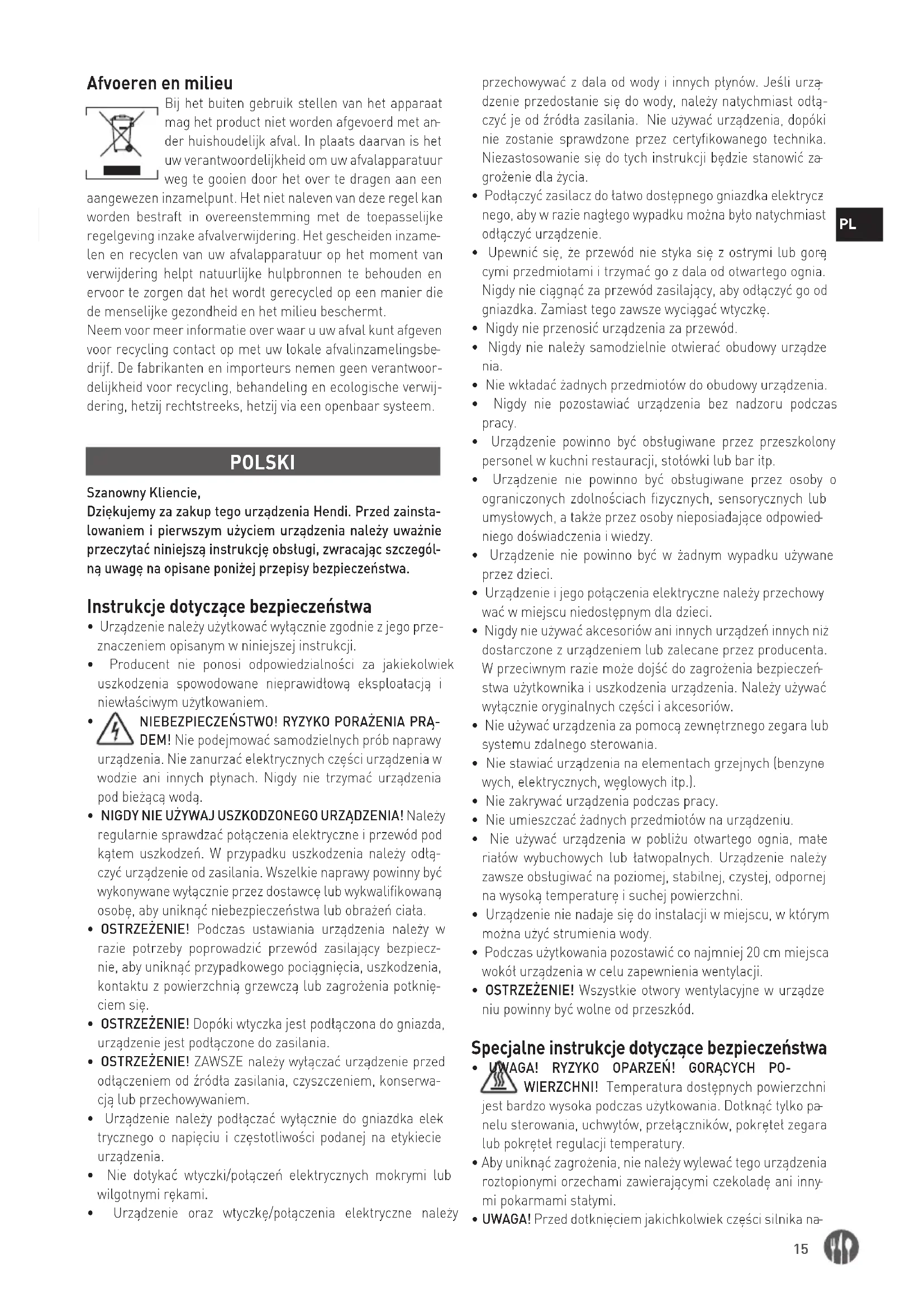 tencjalnym negatywnym konsekwencjom dla środowiska na- turalnego i ludzkiego zdrowia. Jednocześnie oszczędzamy naturalne zasoby naszej Ziemi wykorzystując powtórnie surowce uzyskane z przetwarzania sprzętu. FRANÇAIS Cher client, Merci d’avoir acheté cet appareil Hendi. Lisez attentivement ce manuel d’utilisation, en accordant une attention particu