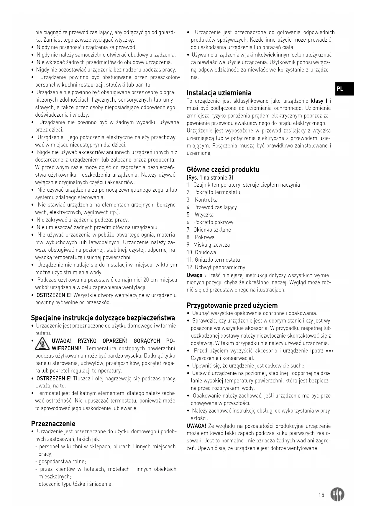 - Urządzenie jest przeznaczone do gotowania odpowiednich produktów spożywczych. Każde inne użycie może prowadzić do uszkodzenia urządzenia lub obrażeń ciała.