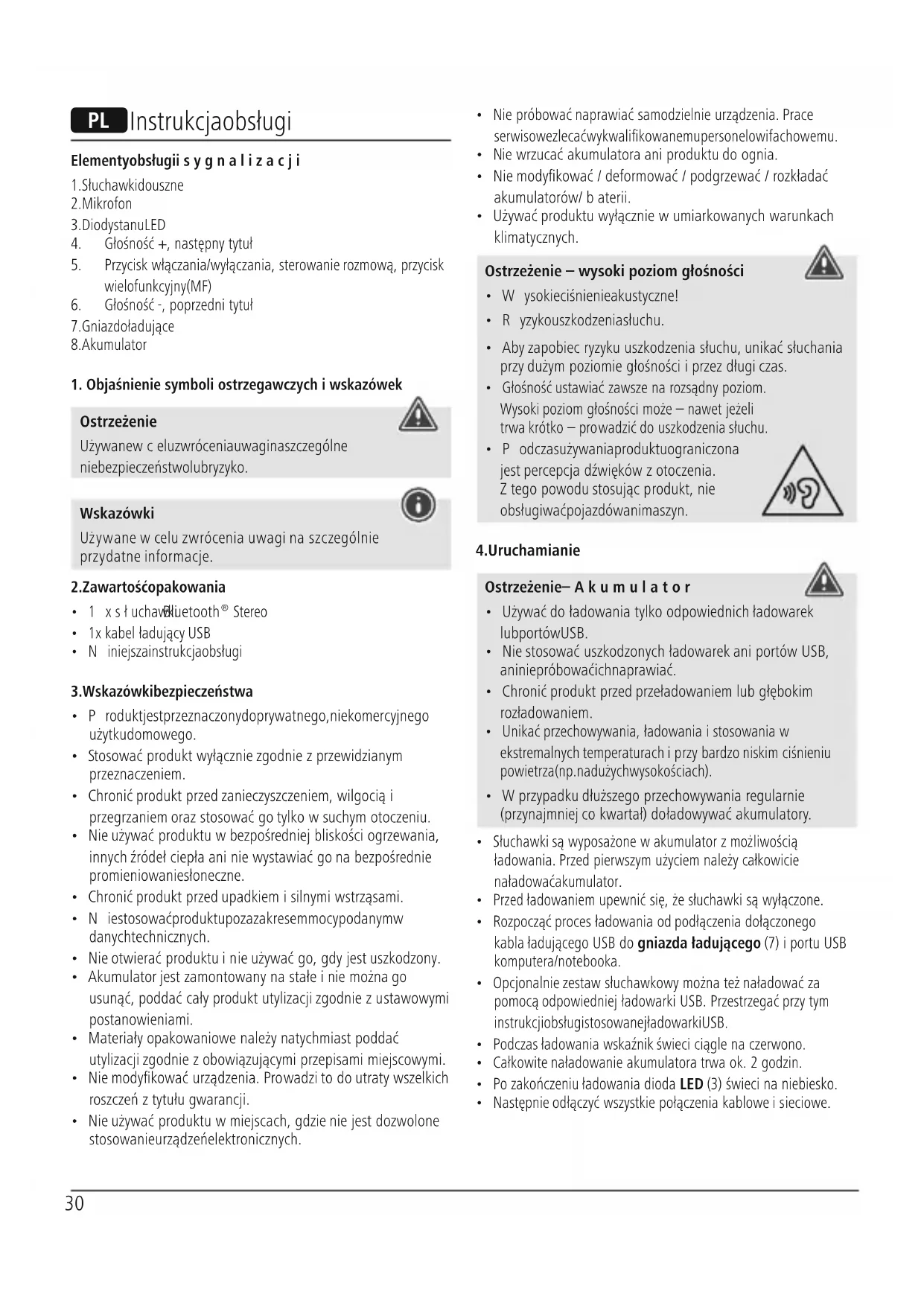- Słuchawki są wyposażone wakumulator zmożliwością ładowania. Przed pierwszym użyciem należycałkowicie naładować akumulator.