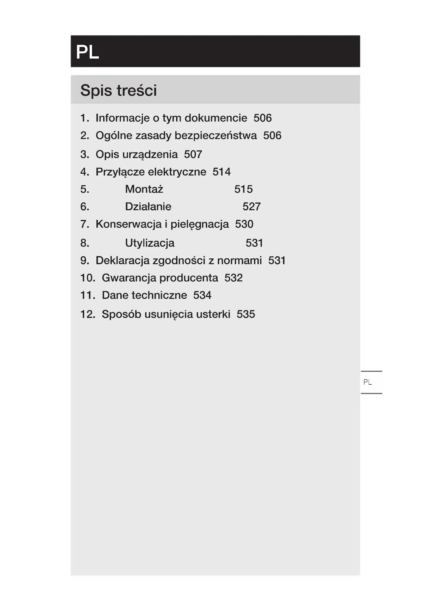 PL– 506 – Spis treści