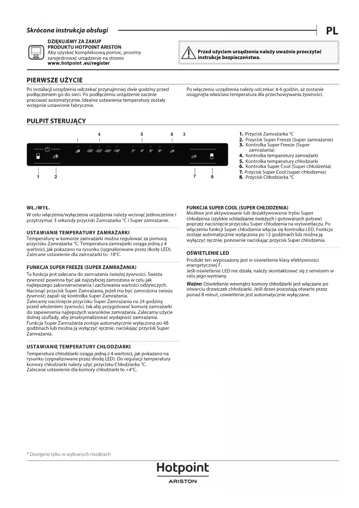Aby uzyskać kompleksową pomoc, prosimy zarejestrować urządzenie na stronie www . hotpoint . eu/ register Przed użyciem urządzenia należy uważnie przeczytać instrukcje bezpieczeństwa.
