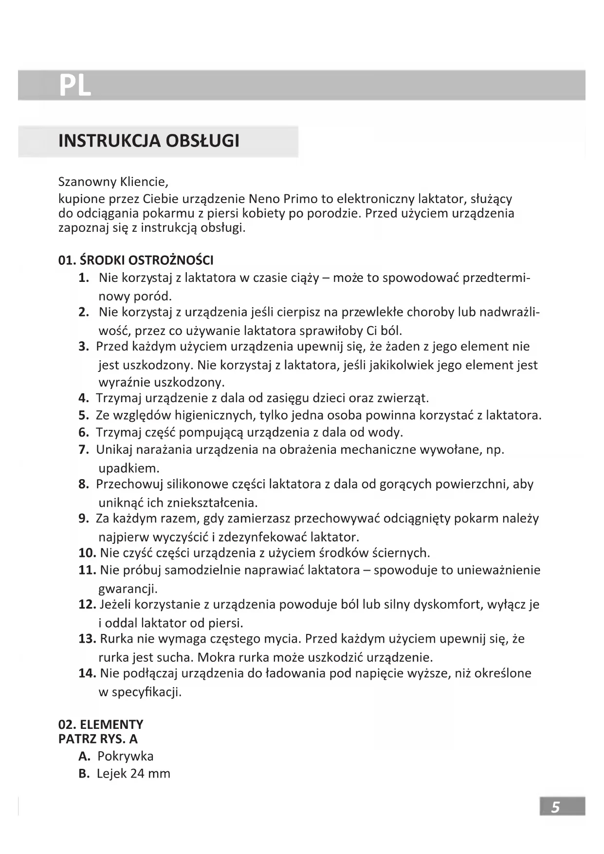 Szanowny Kliencie, kupione przez Ciebie urządzenie Neno Primo to elektroniczny laktator, służący do odciągania pokarmu z piersi kobiety po porodzie. Przed użyciem urządzenia zapoznaj się z instrukcją obsługi.