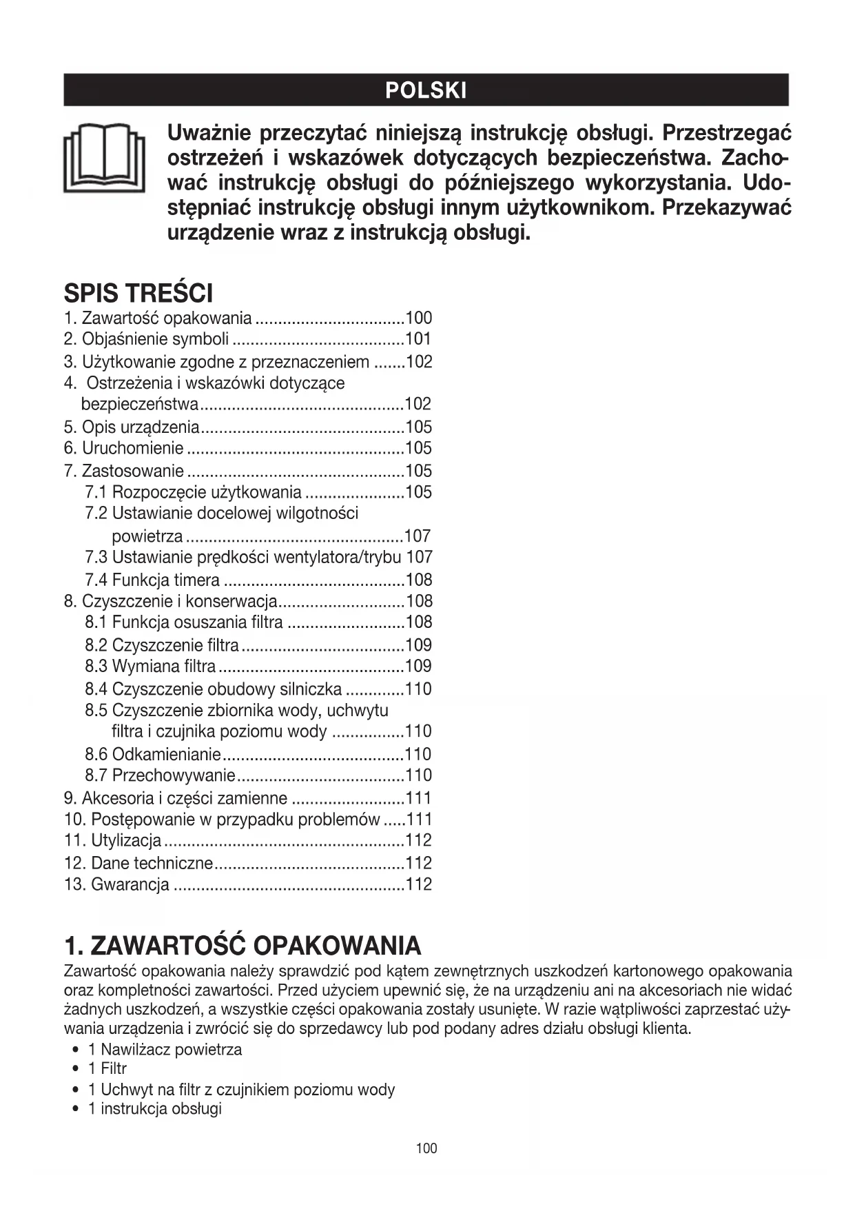 1. Zawartość opakowania .................................100