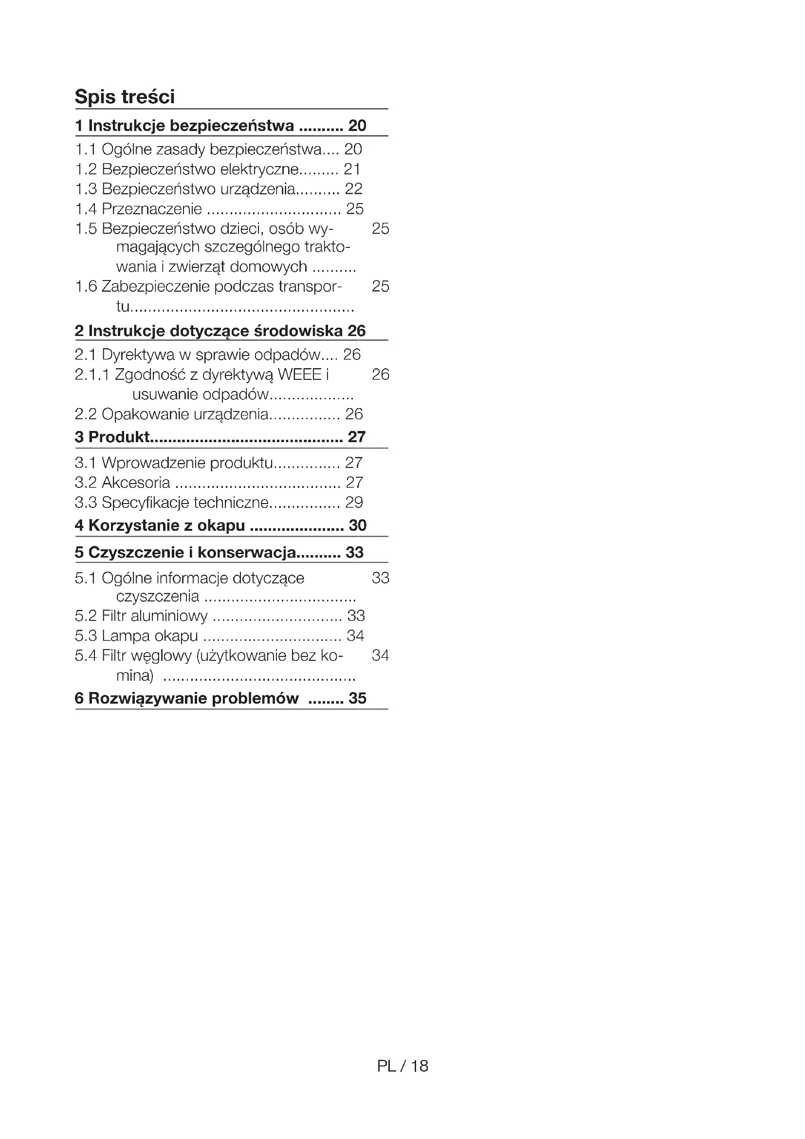 4 Korzystanie z okapu ..................... 30 5 Czyszczenie i konserwacja.......... 33