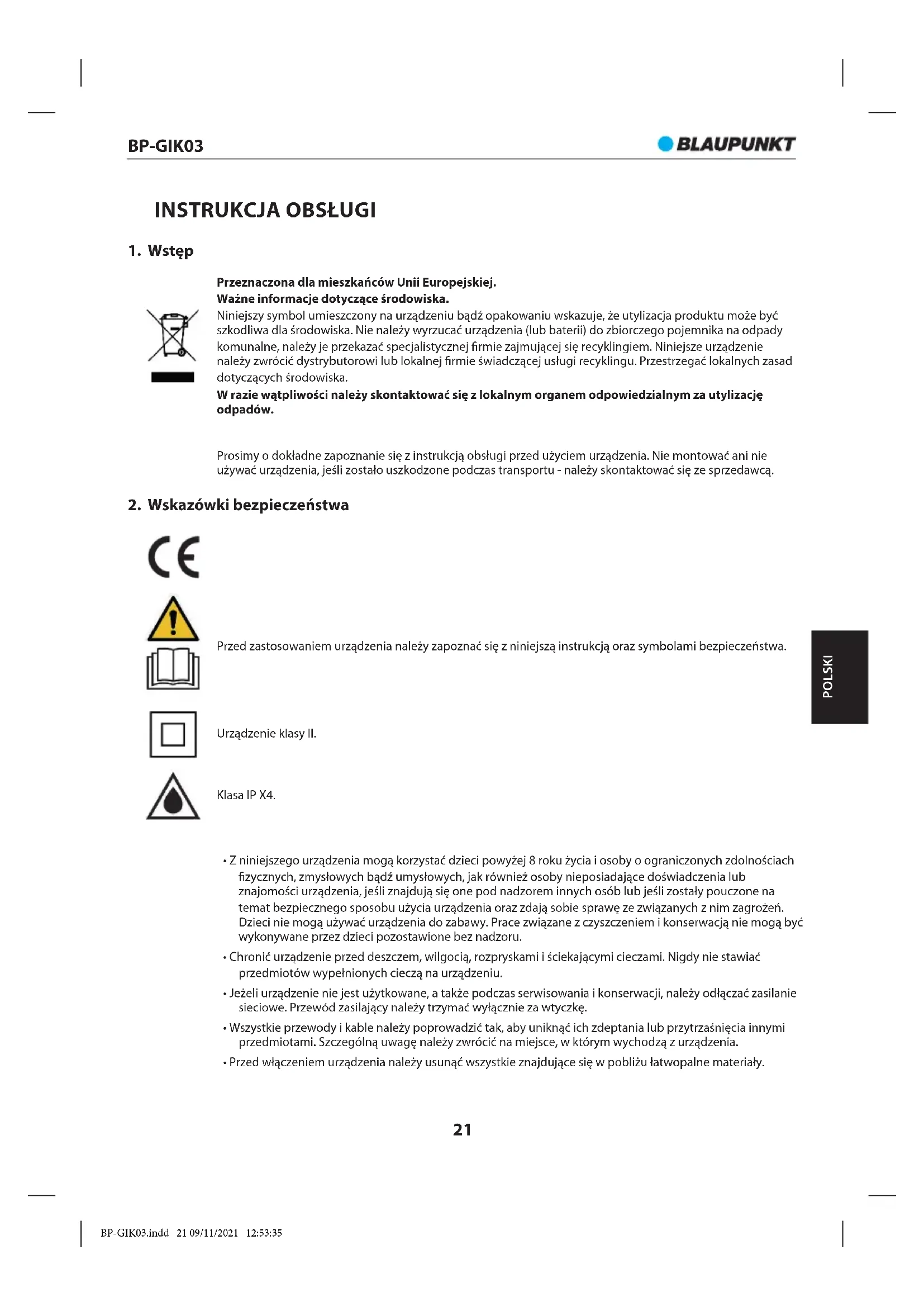 INSTRUKCJA OBSŁUGI BP-GIK03 BLAUPUNKT