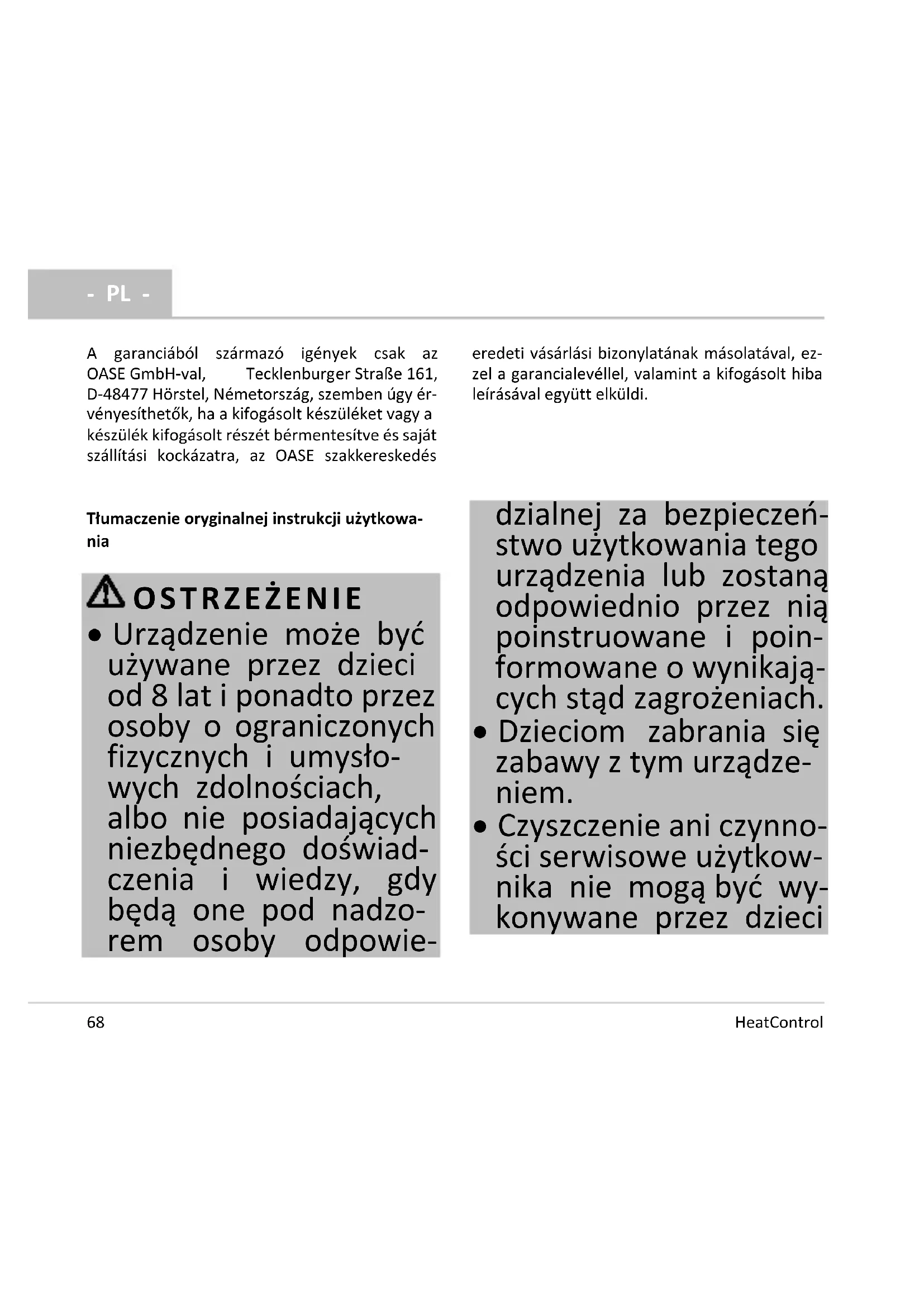 Znajdź bezpłatnie instrukcję urządzenia HeatControl OASE w formacie PDF.