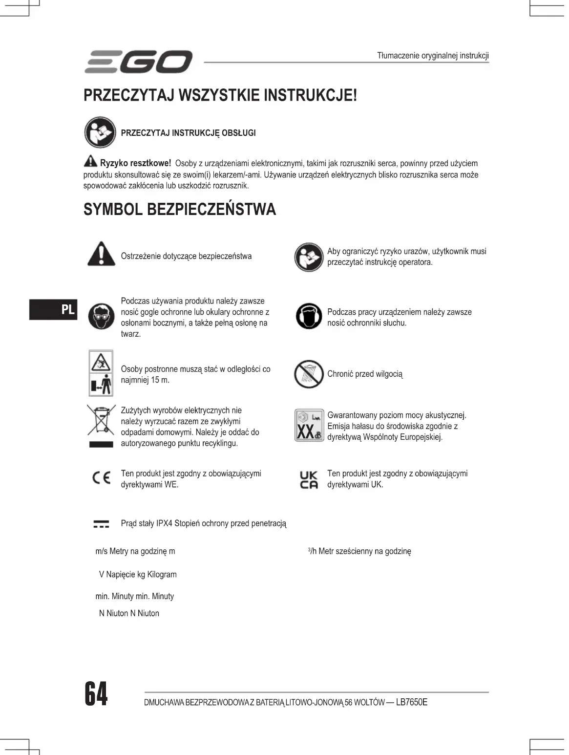 LB7650E - Dmuchawa EGO - Bezpłatna instrukcja obsługi