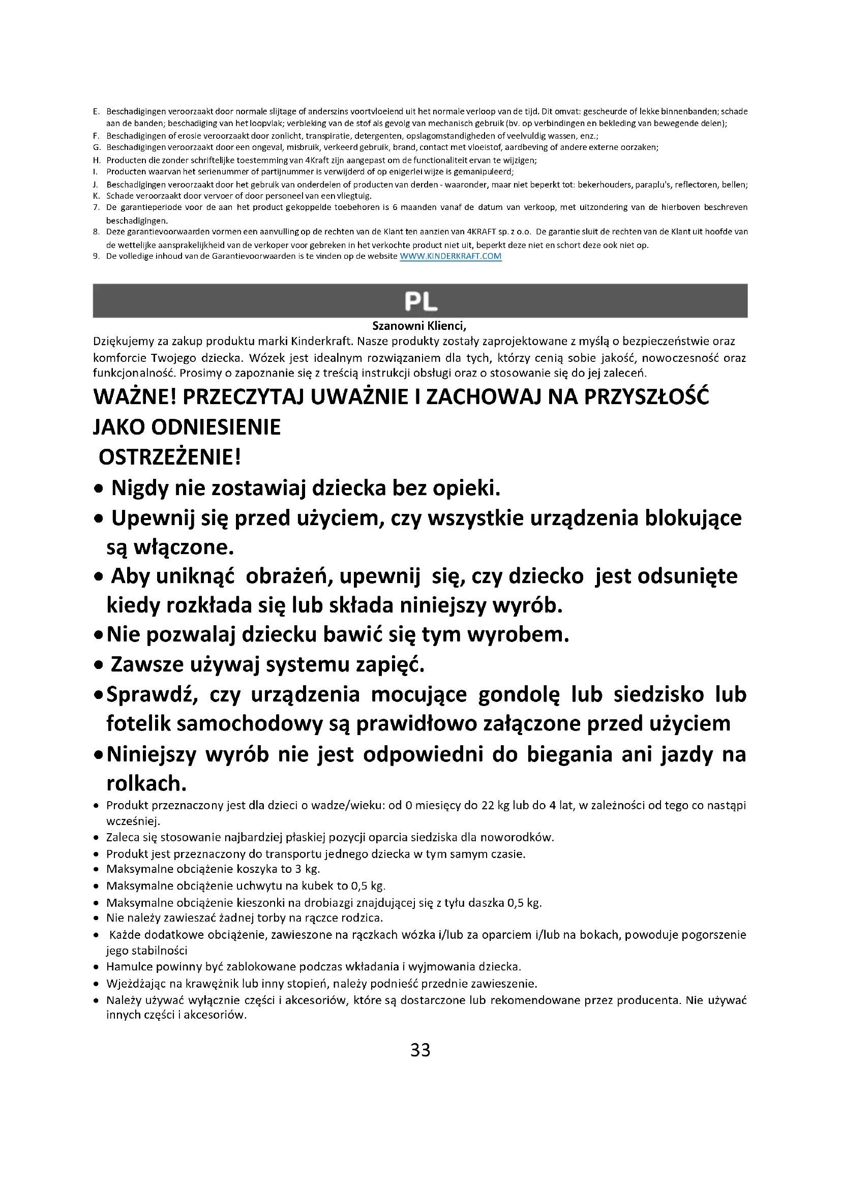 Szanowni Klienci, Dziękujemy za zakup produktu marki Kinderkraft. Nasze produkty zostały zaprojektowane z myślą o bezpieczeństwie oraz komforcie Twojego dziecka. Wózek jest idealnym rozwiązaniem dla tych, którzy cenią sobie jakość, nowoczesność oraz funkcjonalność. Prosimy o zapoznanie się z treścią instrukcji obsługi oraz o stosowanie się do jej zaleceń. WAŻNE! PRZECZYTAJ UWAŻNIE I ZACHOWAJ NA PRZYSZŁOŚĆ JAKO ODNIESIENIE OSTRZEŻENIE!