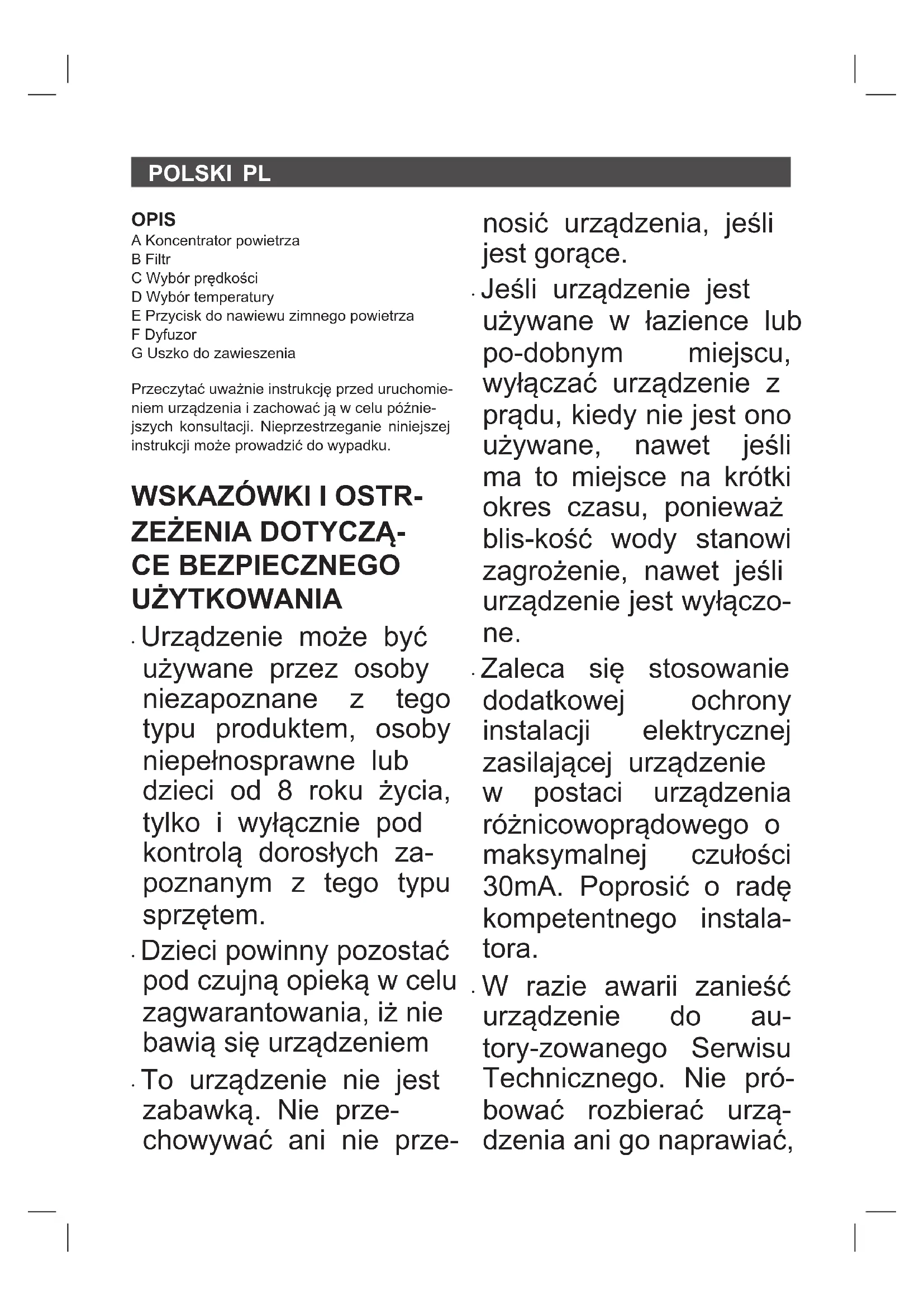 - W razie awarii zanieść urządzenie do au- toryzowanego Serwisu Technicznego. Nie próbować rozbierać urządzenia ani go na- prawiać, ponieważ może to być niebezpieczne.