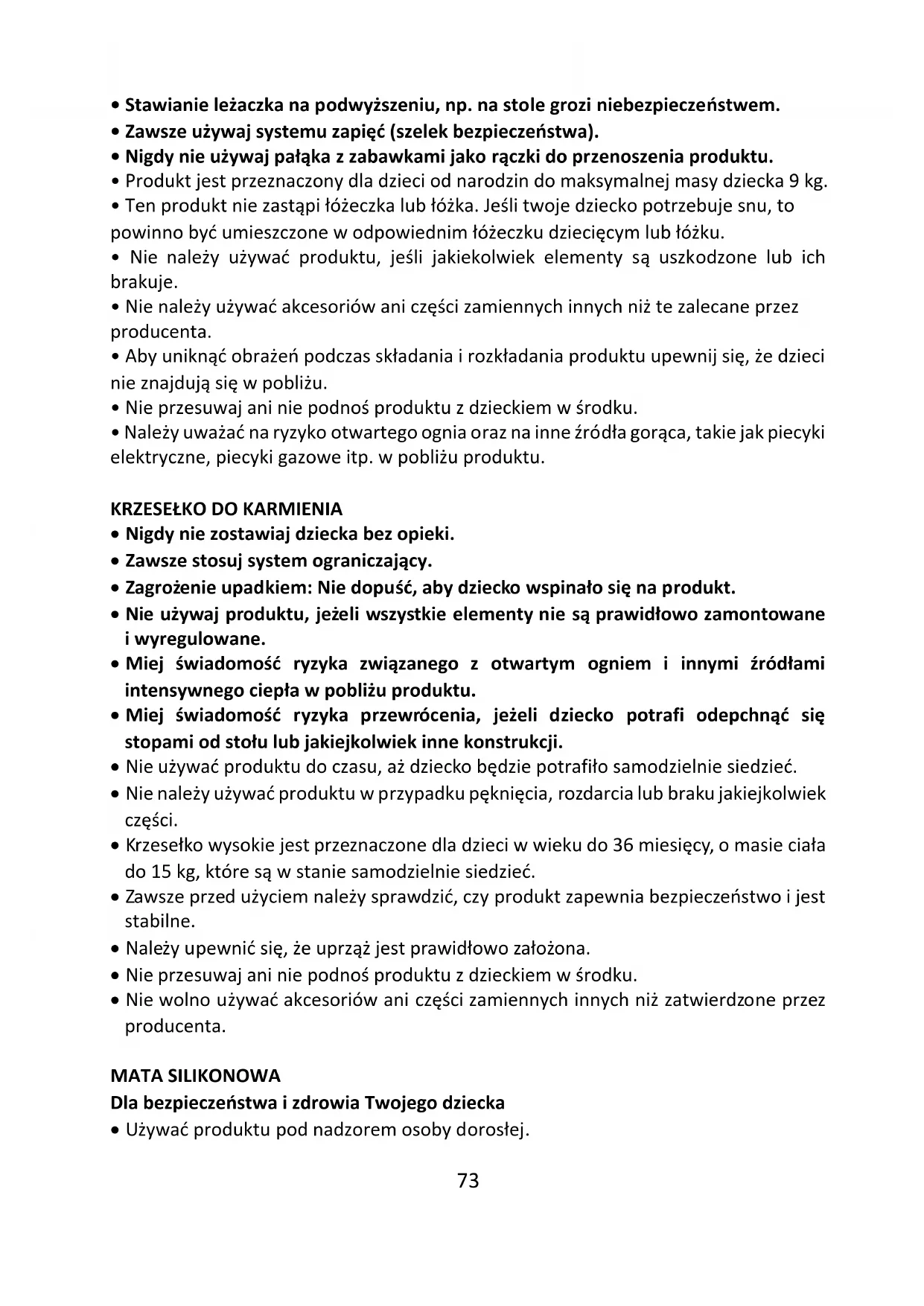 - Produkt nie jest przeznaczony do długiego okresu spania.73