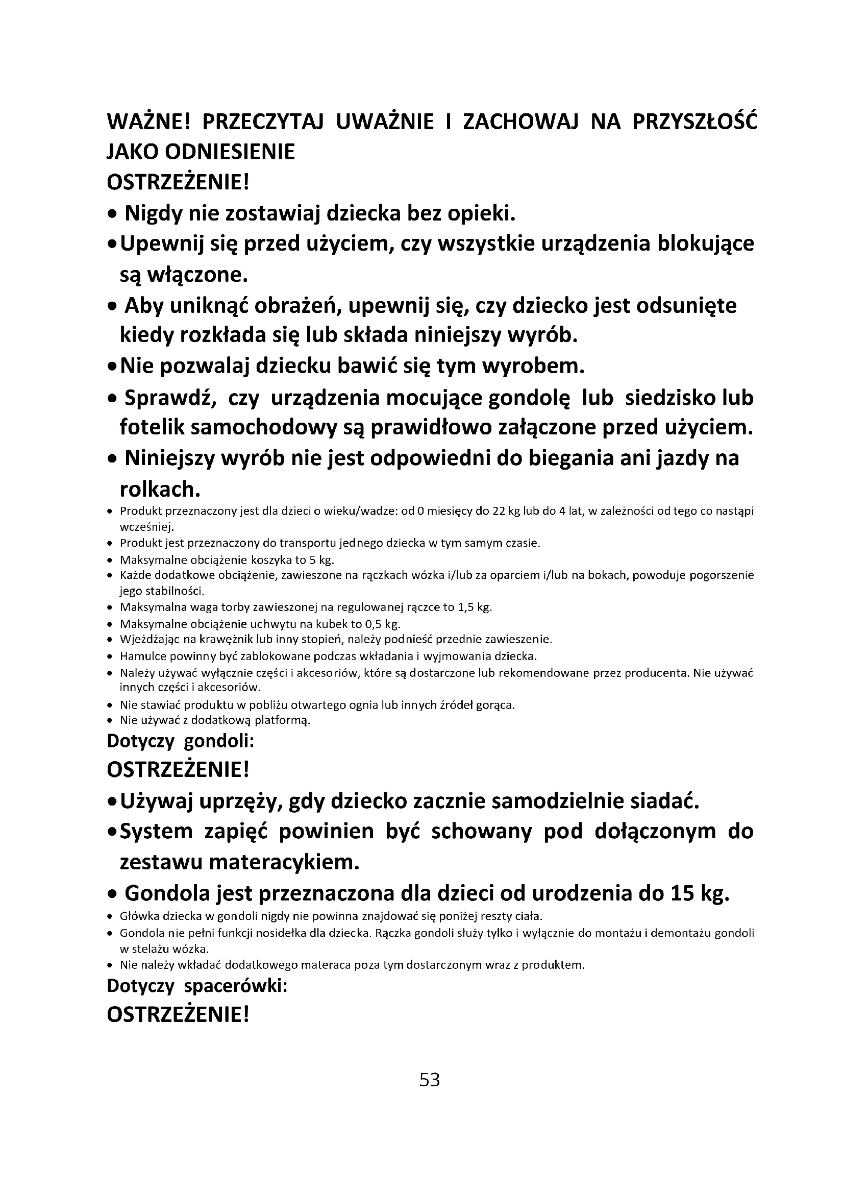 - Nie należy wkładać dodatkowego materaca poza tym dostarczonym wraz z produktem. Dotyczy spacerówki: OSTRZEŻENIE!54