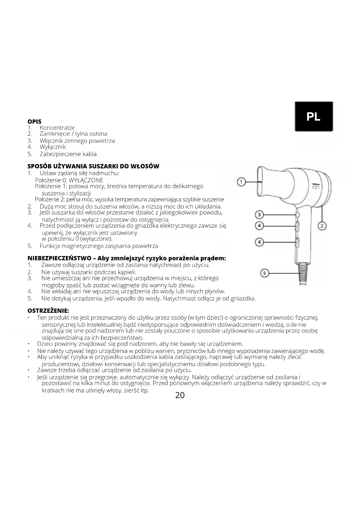 - Jeśliurządzeniesięprzegrzeje,automatyczniesięwyłączy.Należyodłączyćurządzenieodzasilaniai pozostawićnakilkaminutdoostygnięcia.Przedponownymwłączeniemurządzenianależysprawdzić,czyw kratkachniemautknęływłosy,sierśćitp. PL21