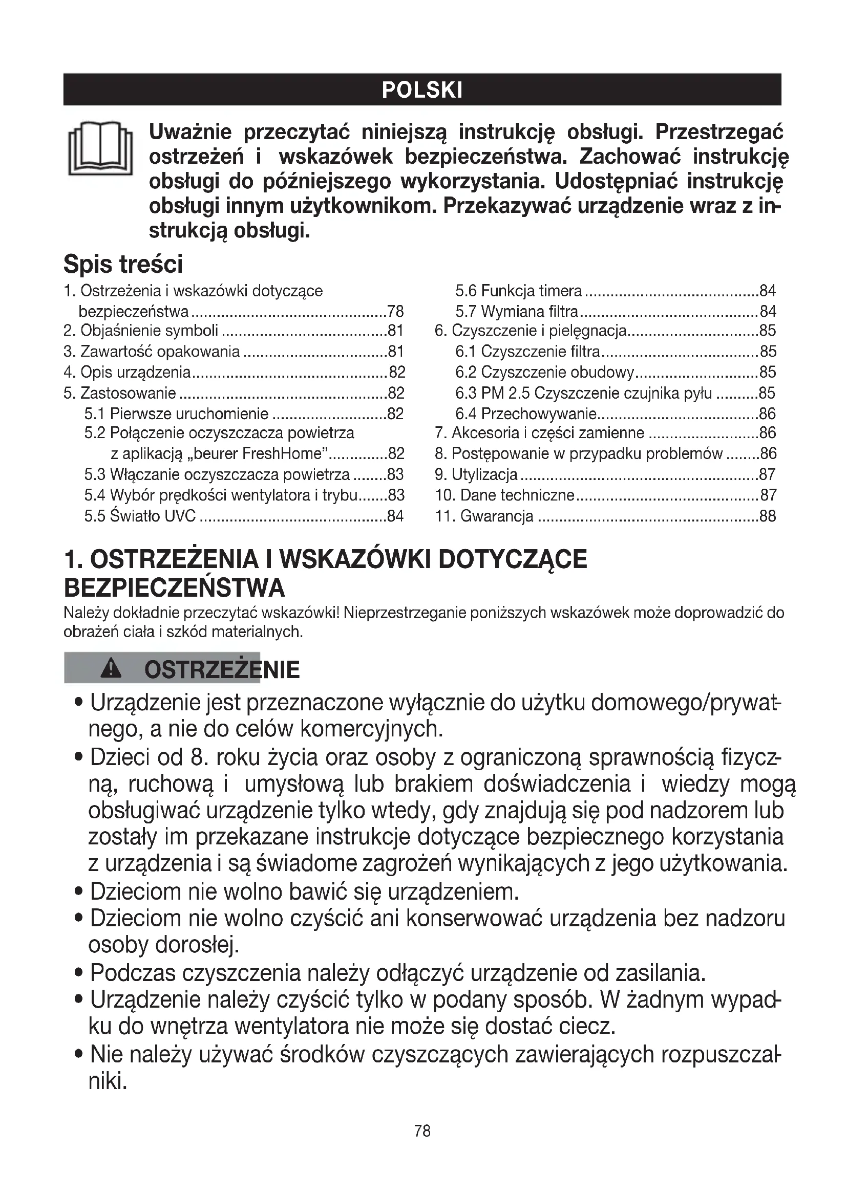Uważnie przeczytać niniejszą instrukcję obsługi. Przestrzegać ostrzeżeń i wskazówek bezpieczeństwa. Zachować instrukcję obsługi do późniejszego wykorzystania. Udostępniać instrukcję obsługi innym użytkownikom. Przekazywać urządzenie wraz zin