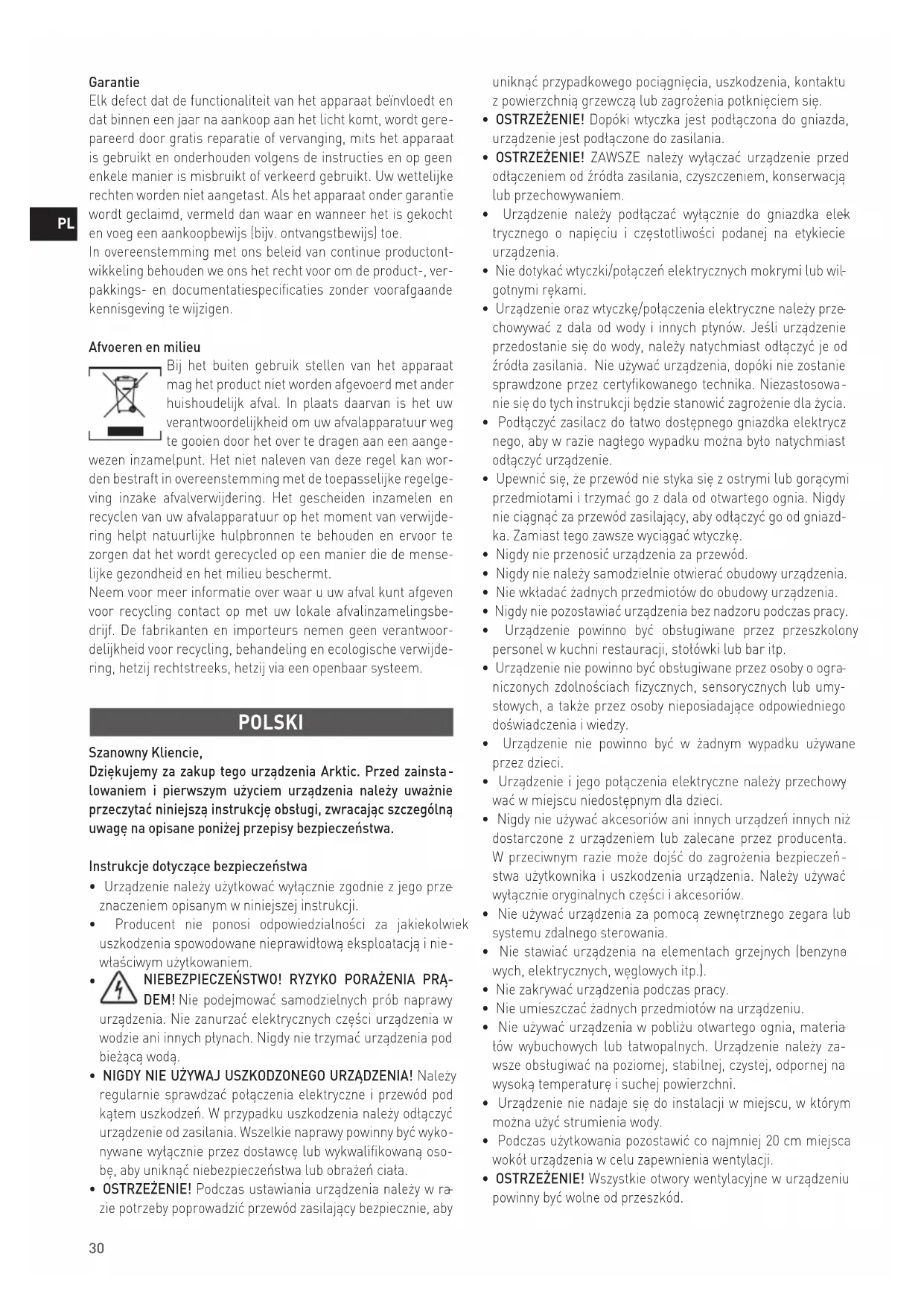 cjalnym negatywnym konsekwencjom dla środowiska natural- nego i ludzkiego zdrowia. Jednocześnie oszczędzamy naturalne zasoby naszej Ziemi wykorzystując powtórnie surowce uzyskane z przetwarzania sprzętu. FRANÇAIS Cher client, Merci d’avoir acheté cet appareil Arktic. Lisez attentivement ce manuel d’utilisation, en accordant une attention particu