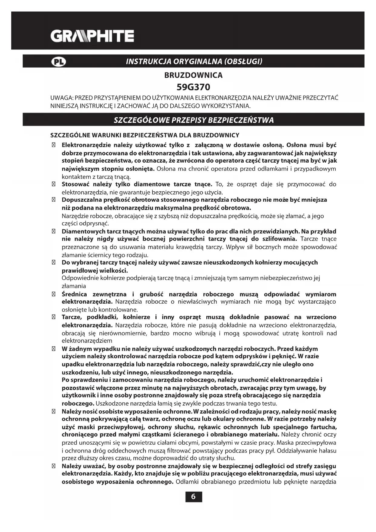 59G370 - Piła Graphite - Bezpłatna instrukcja obsługi