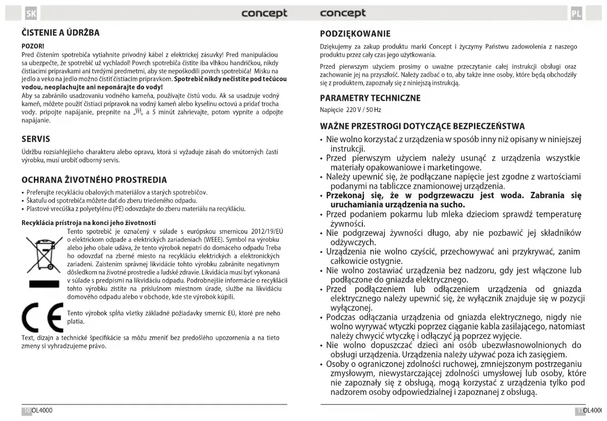 OL4000 - Podgrzewacz do butelek Concept - Bezpłatna instrukcja obsługi