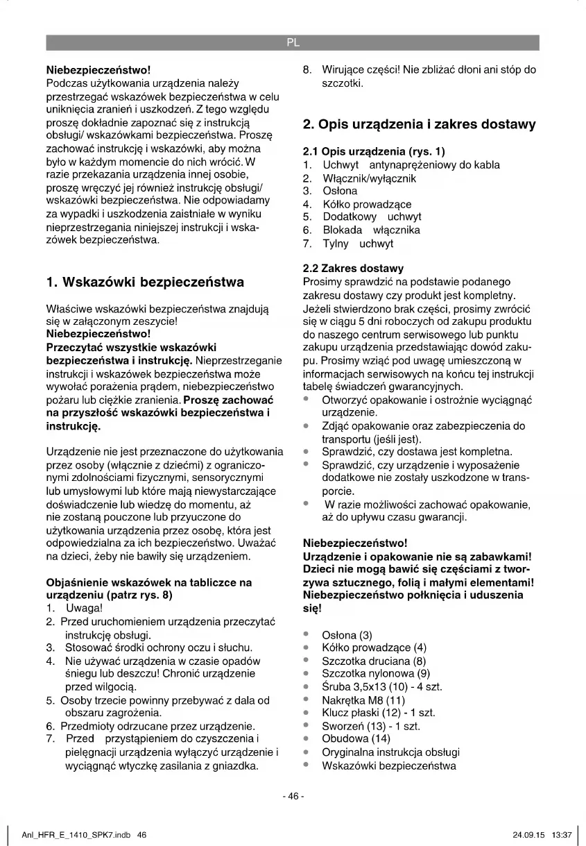 Wskazówki bezpieczeństwa Anl_HFR_E_1410_SPK7.indb 46Anl_HFR_E_1410_SPK7.indb 46 24.09.15 13:3724.09.15 13:37PL