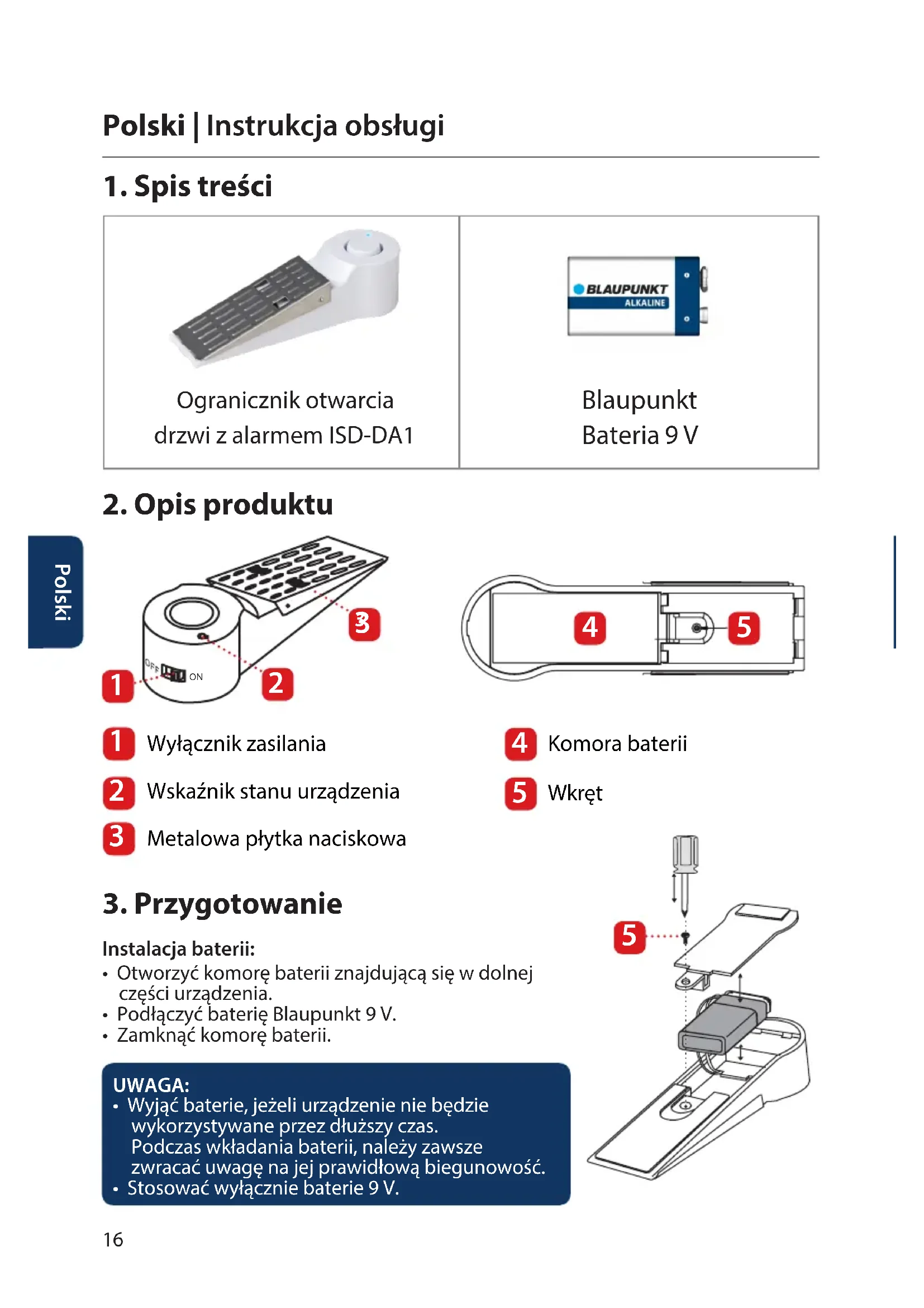 ISD-DA1 - Dzwonek alarmowy BLAUPUNKT - Bezpłatna instrukcja obsługi