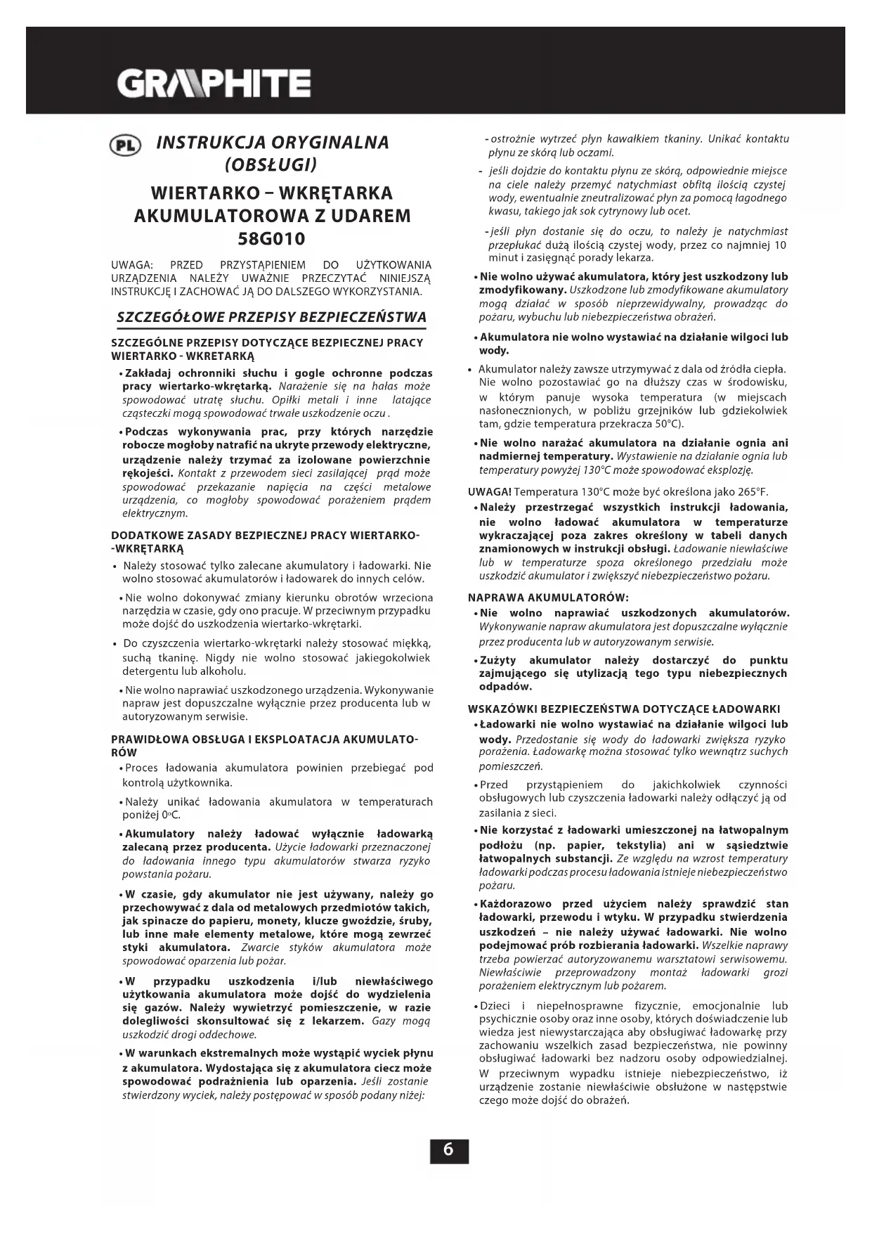 INSTRUKCJA OBSŁUGI 58G010 Graphite