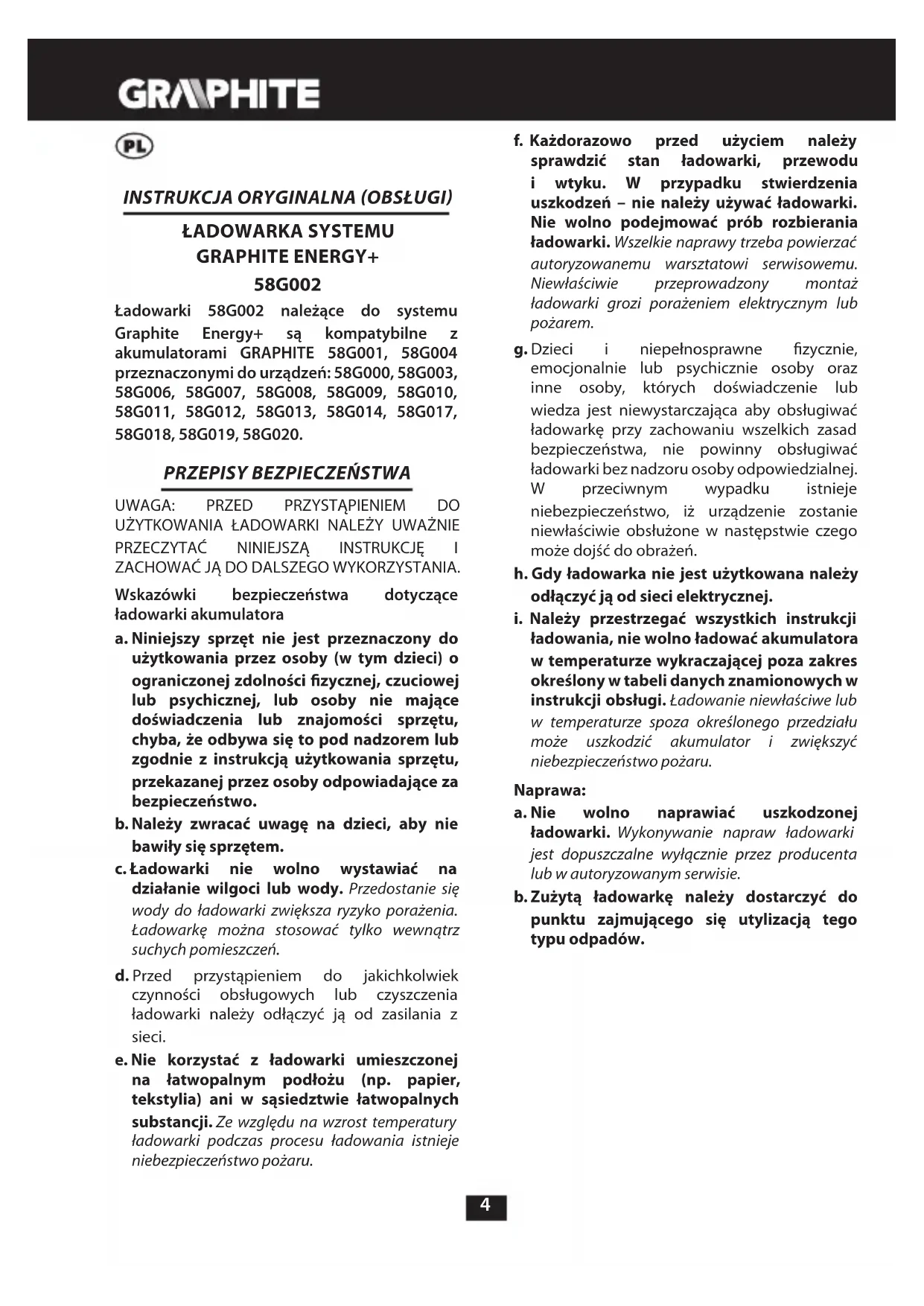 INSTRUKCJA OBSŁUGI 58G020 Graphite