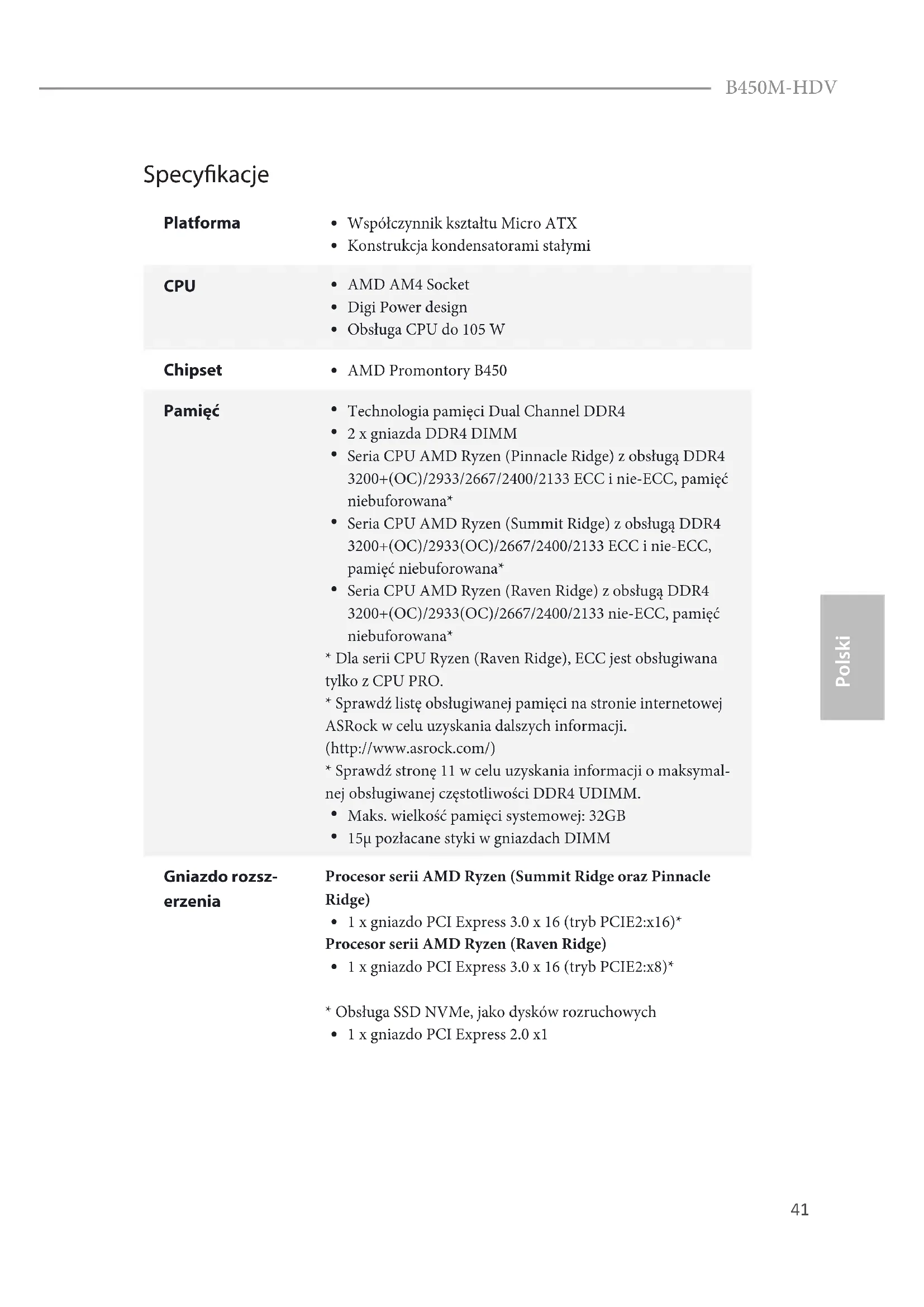INSTRUKCJA OBSŁUGI B450M-HDV ASROCK