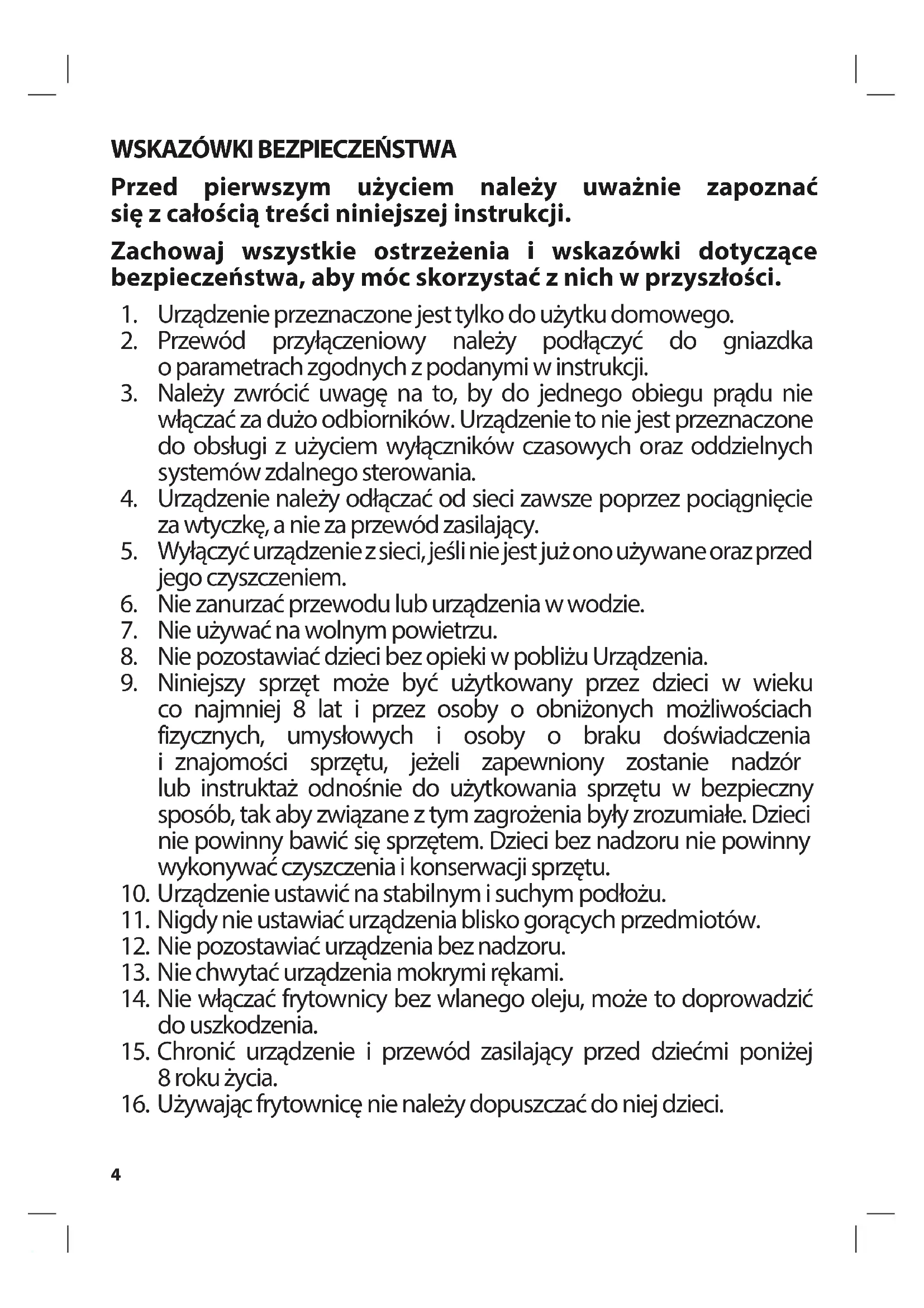 16. Używając frytownicę nie należy dopuszczać do niej dzieci.