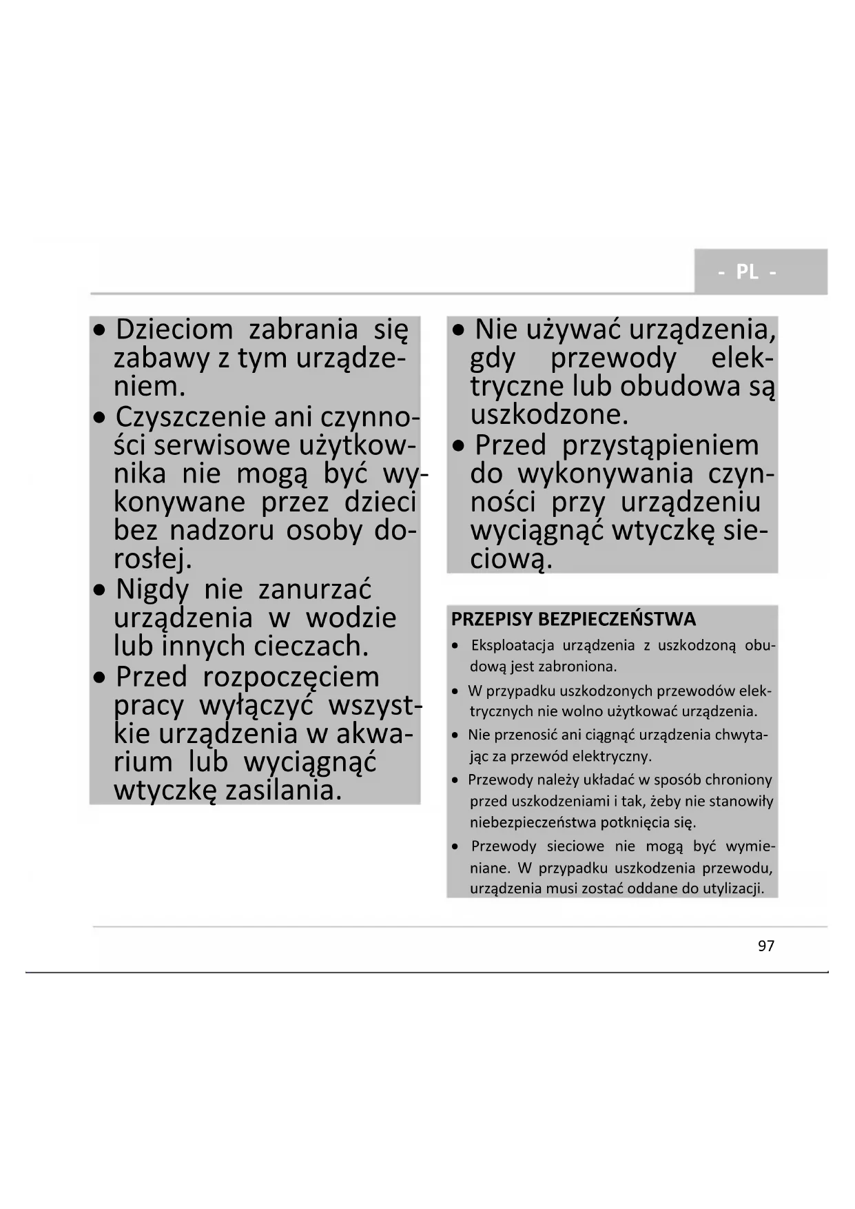 - Przewody sieciowe nie mogą być wymie- niane. W przypadku uszkodzenia przewodu, urządzenia musi zostać oddane do utylizacji.- PL -