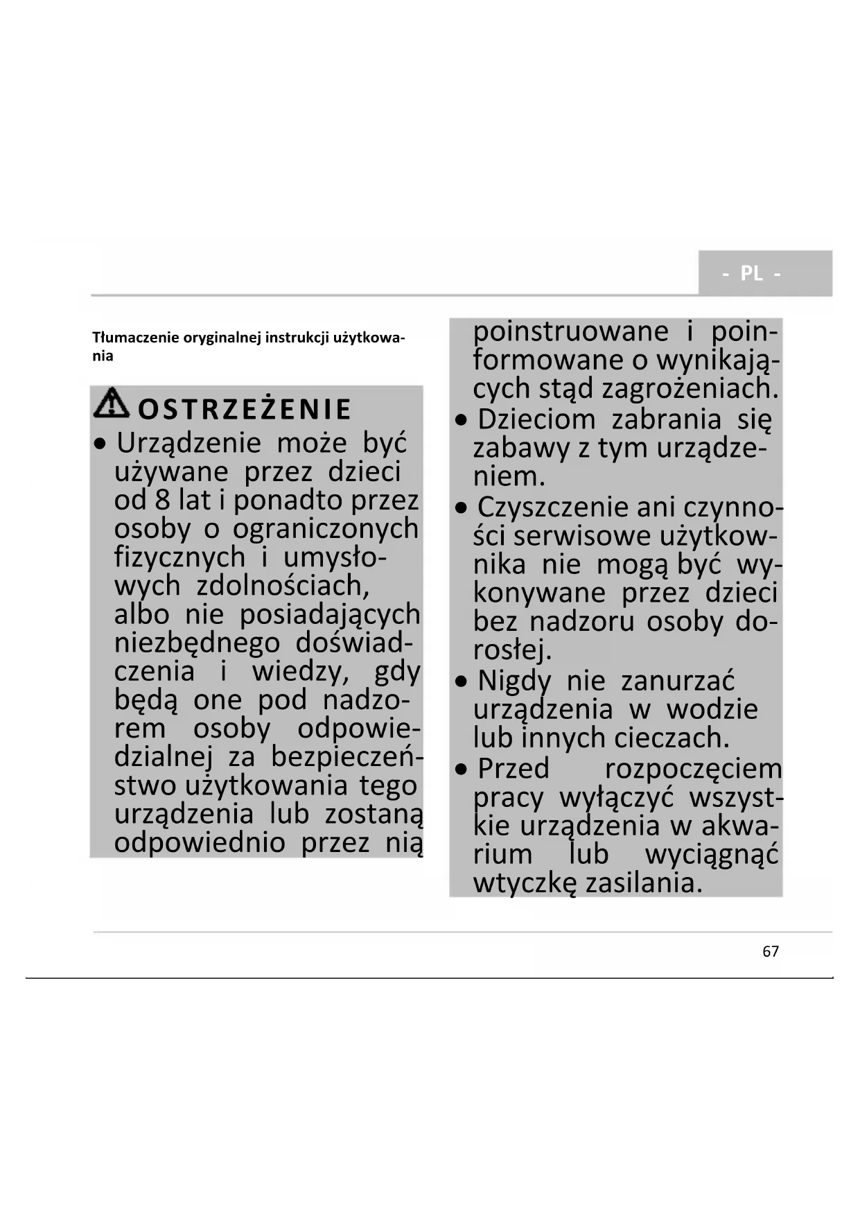 - PL - Tłumaczenie oryginalnej instrukcji użytkowa- nia OSTRZEŻENIE