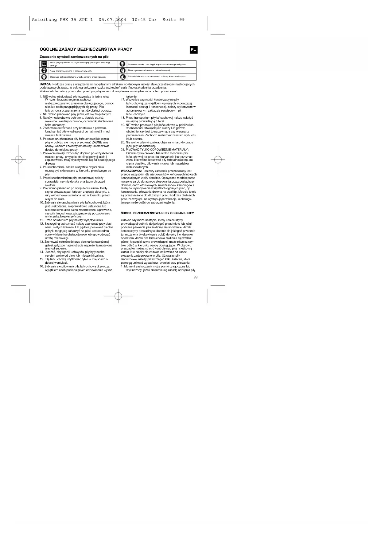 wykluczony, jeżeli zrozumie się zasadę odbijania piły. Anleitung PBK 35 SPK 1 05.07.2004 10:45 Uhr Seite 99PL