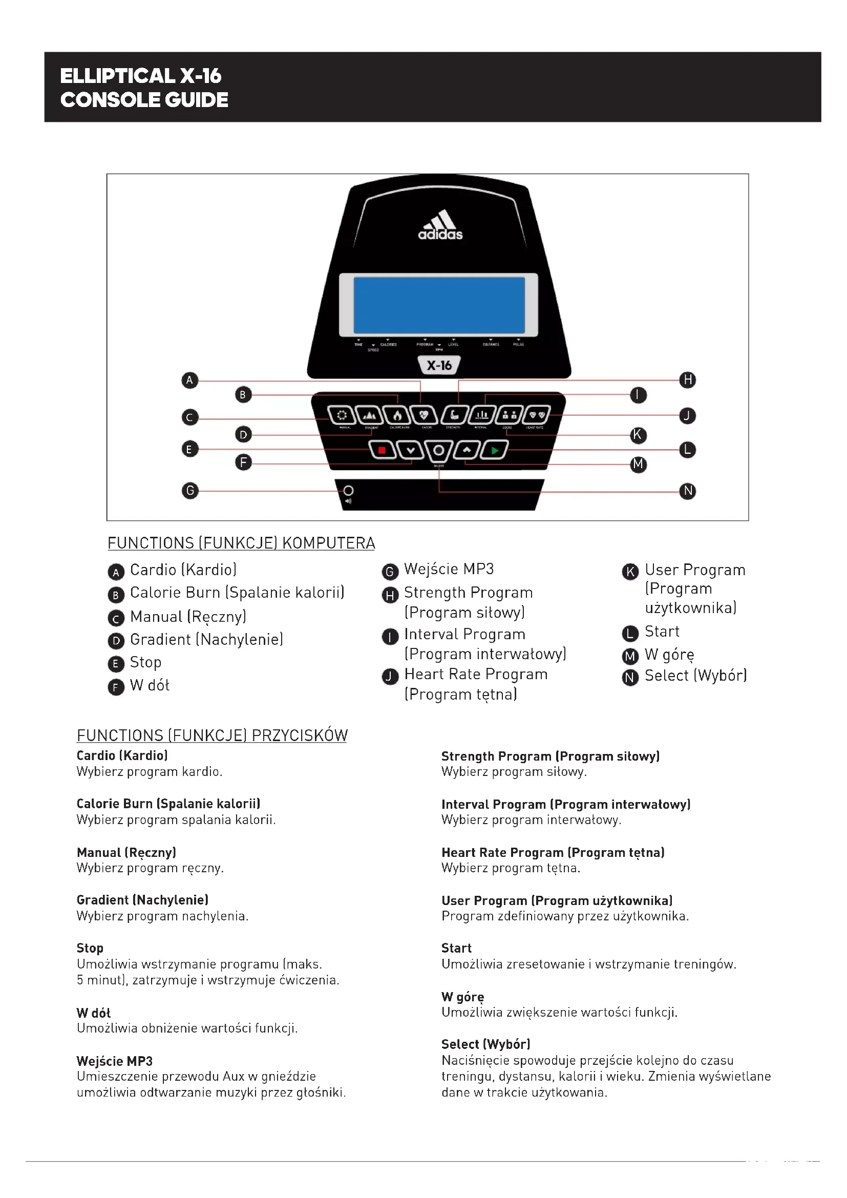 INSTRUKCJA OBSŁUGI X-16 ADIDAS