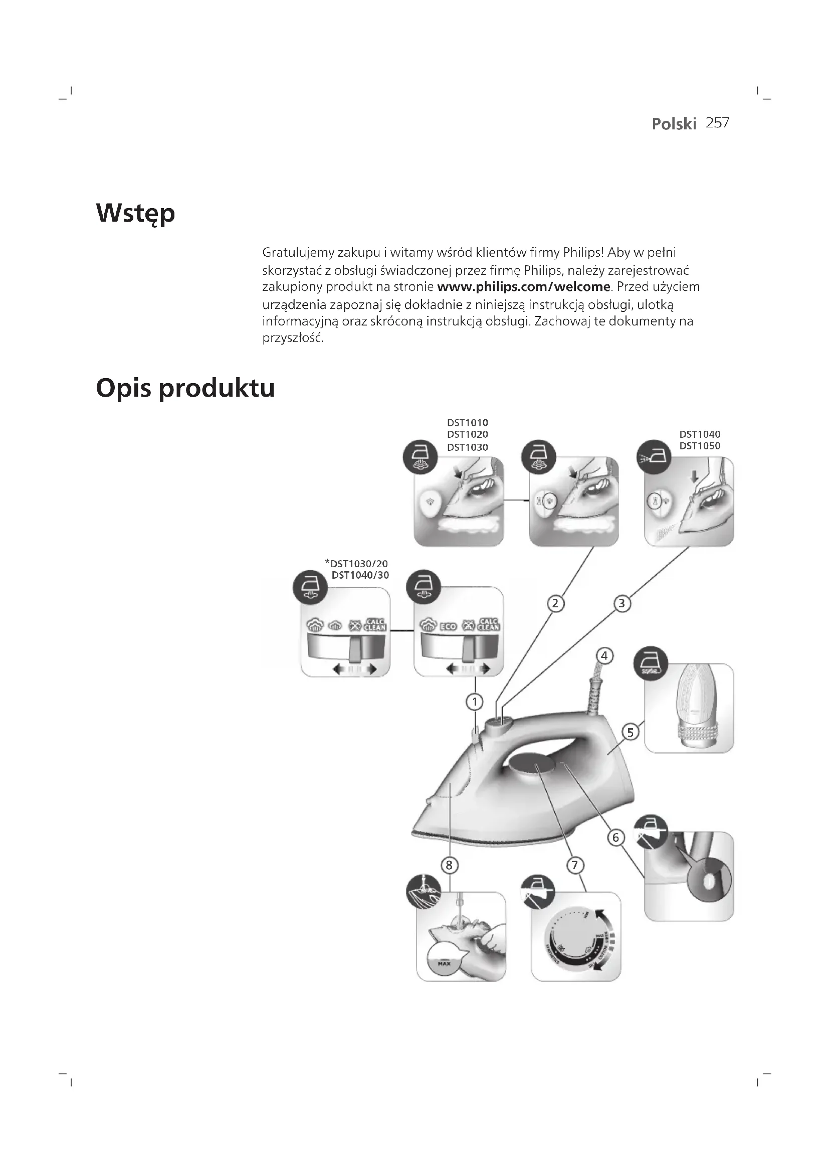 1000 Series DST1040 - żelazko PHILIPS - Bezpłatna instrukcja obsługi