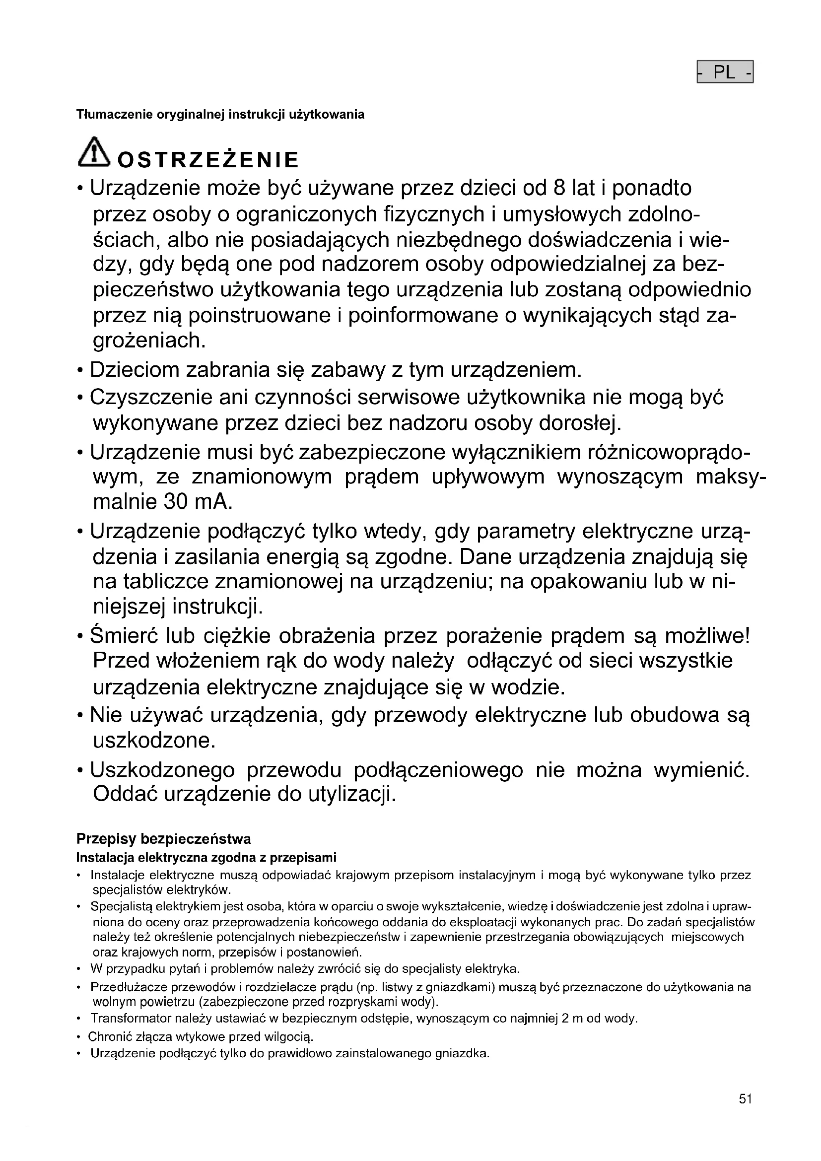 - PL - Tłumaczenie oryginalnej instrukcji użytkowania OSTRZEŻENIE