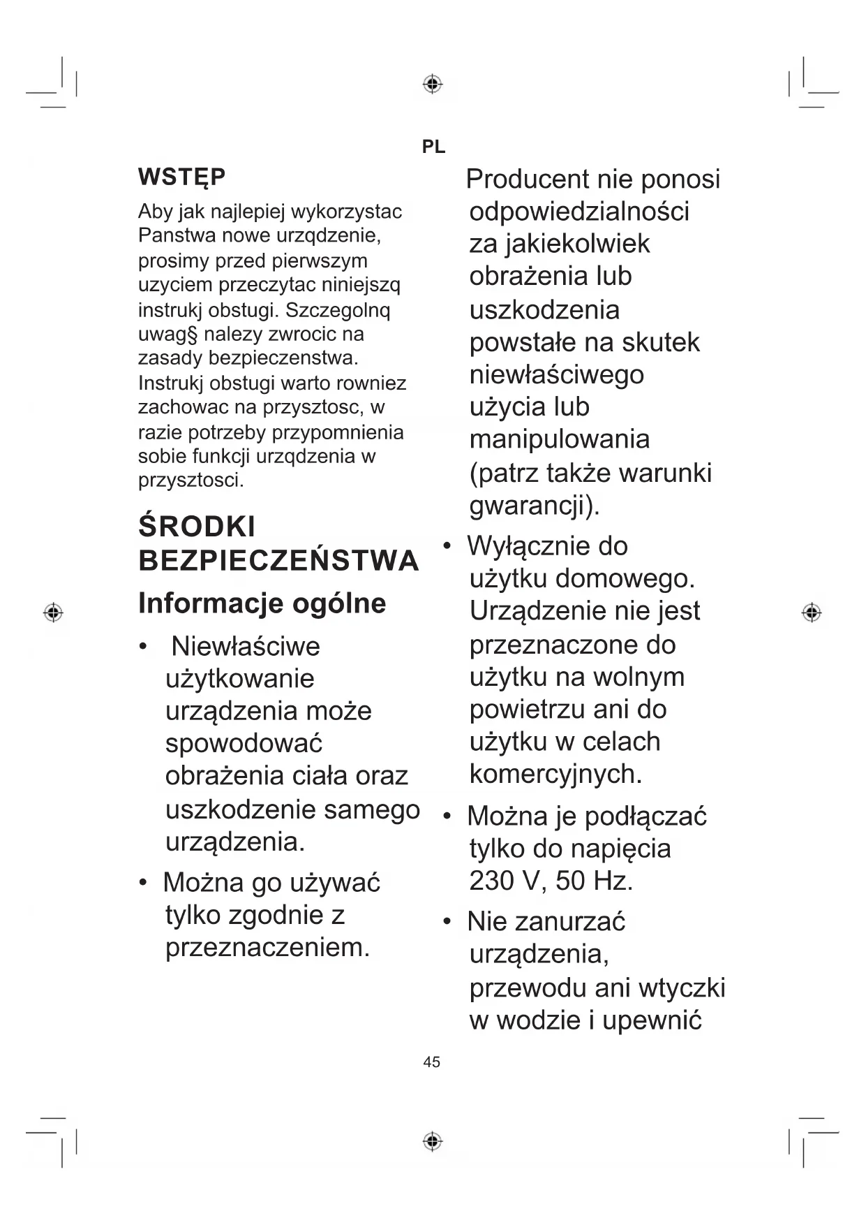 WSTĘP Abyjaknajlepiejwykorzystac Panstwanoweurzqdzenie, prosimyprzedpierwszym uzyciemprzeczytacniniejszq instrukjobstugi.Szczegolnq uwag§nalezyzwrocicna zasadybezpieczenstwa. Instrukjobstugiwartorowniez zachowacnaprzysztosc,w raziepotrzebyprzypomnienia sobiefunkcjiurzqdzeniaw przysztosci. ŚRODKI BEZPIECZEŃSTWA Informacje ogólne