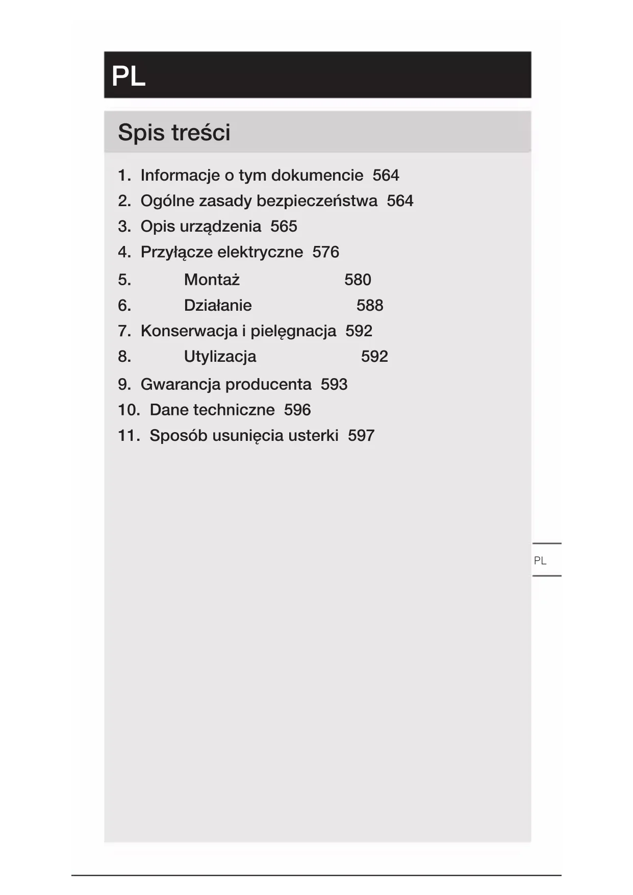 PL– 564 – Spis treści