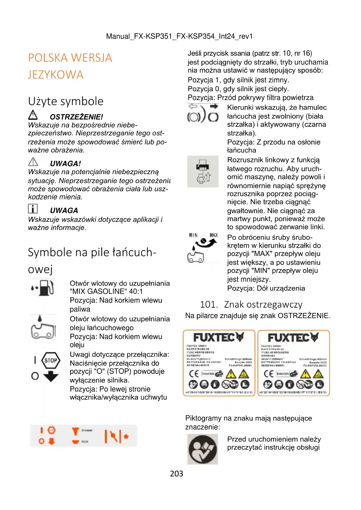 FX-KSP351 - Piła Fuxtec - Bezpłatna instrukcja obsługi