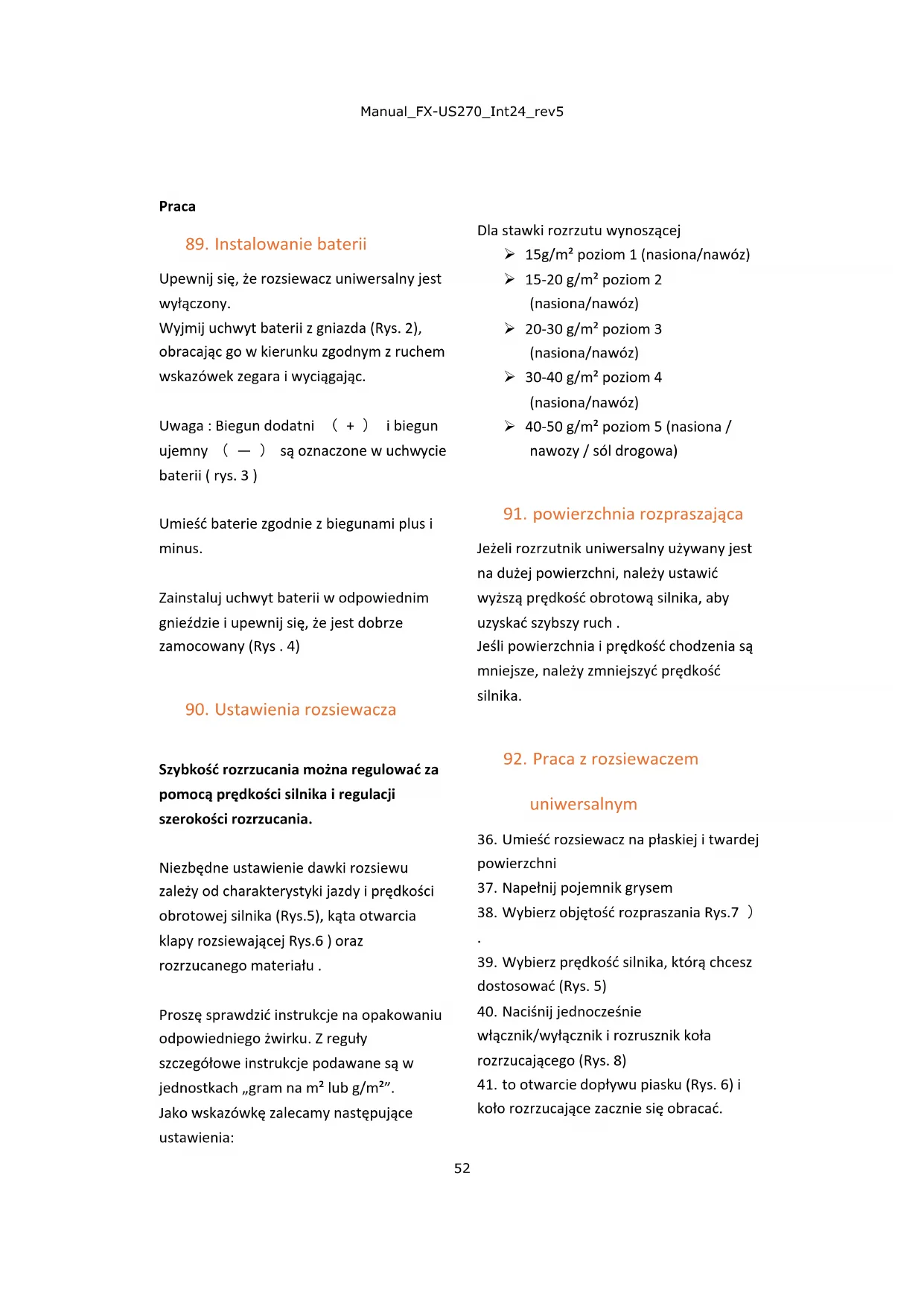 koło rozrzucające zacznie się obracać.Manual_FX-US270_Int24_rev5