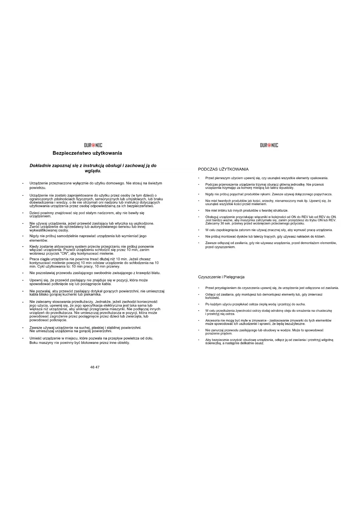 MG301 - Maszynka do mięsa Duronic - Bezpłatna instrukcja obsługi