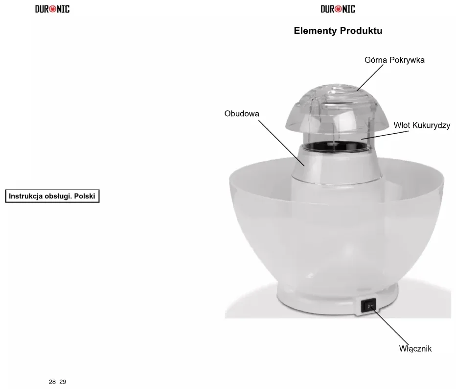 POP50 - Maszyna do popcornu Duronic - Bezpłatna instrukcja obsługi