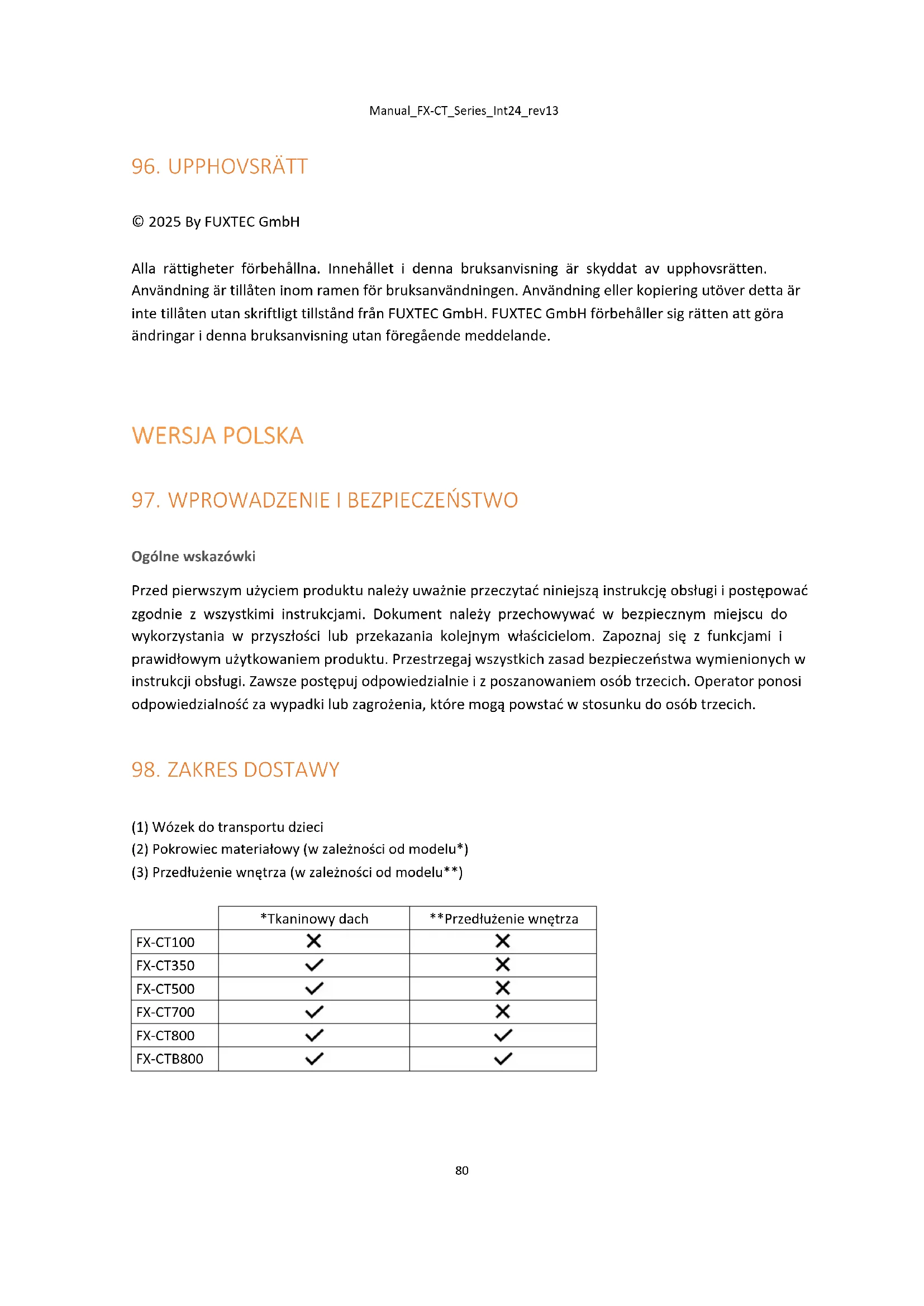 © 2025 By FUXTEC GmbH Wszelkie prawa zastrzeżone. Treść niniejszej instrukcji jest chroniona prawem autorskim. Jej wykorzystanie jest dozwolone wyłącznie w ramach obsługi urządzenia. Wykorzystanie lub powielanie w innym zakresie bez pisemnej zgody FUXTEC GmbH jest zabronione. FUXTEC GmbH zastrzega sobie prawo do wprowadzania zmian w niniejszej instrukcji obsługi bez uprzedniego powiadomienia.Manual_FX-CT_Series_Int24_rev13