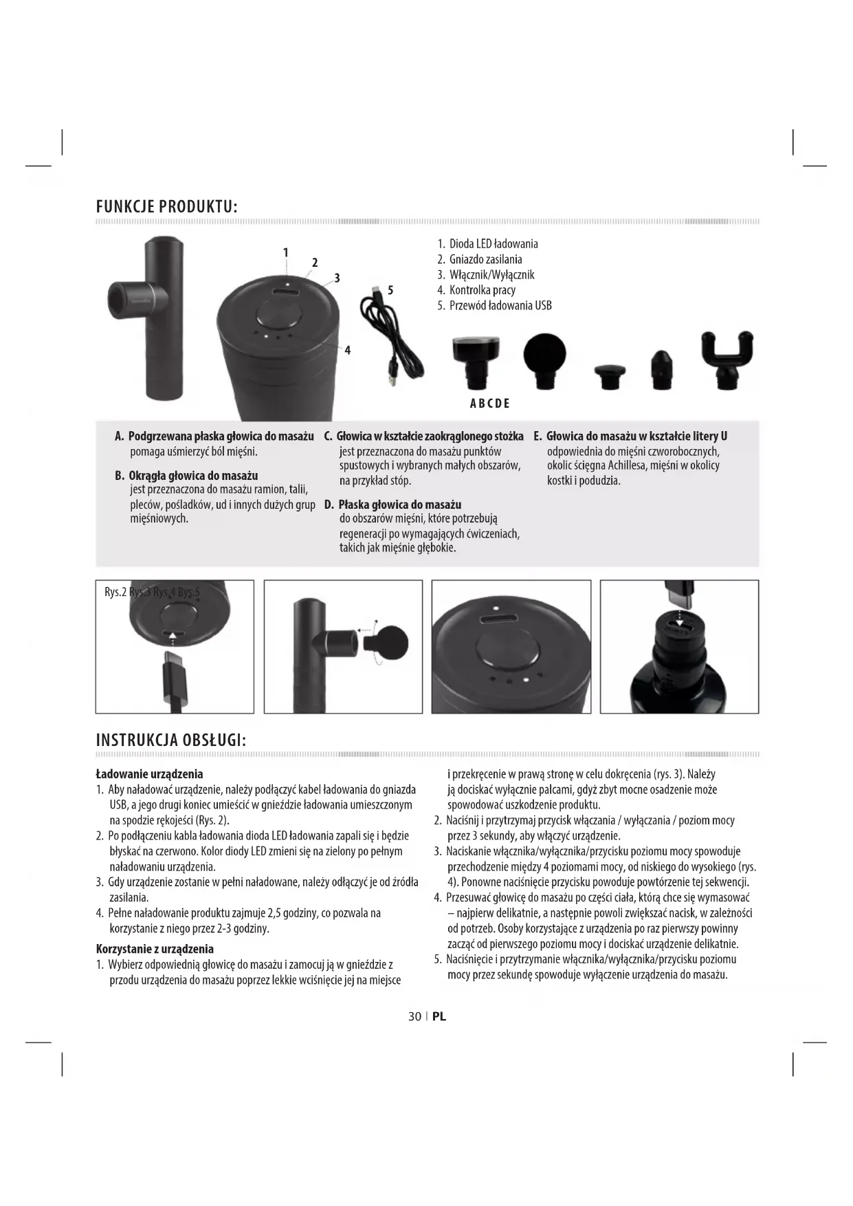 mocy przez sekundę spowoduje wyłączenie urządzenia do masażu. FUNKCJE PRODUKTU: 30 I PL INSTRUKCJA OBSŁUGI: Rys.2 Rys.3 Rys.4 Rys.5