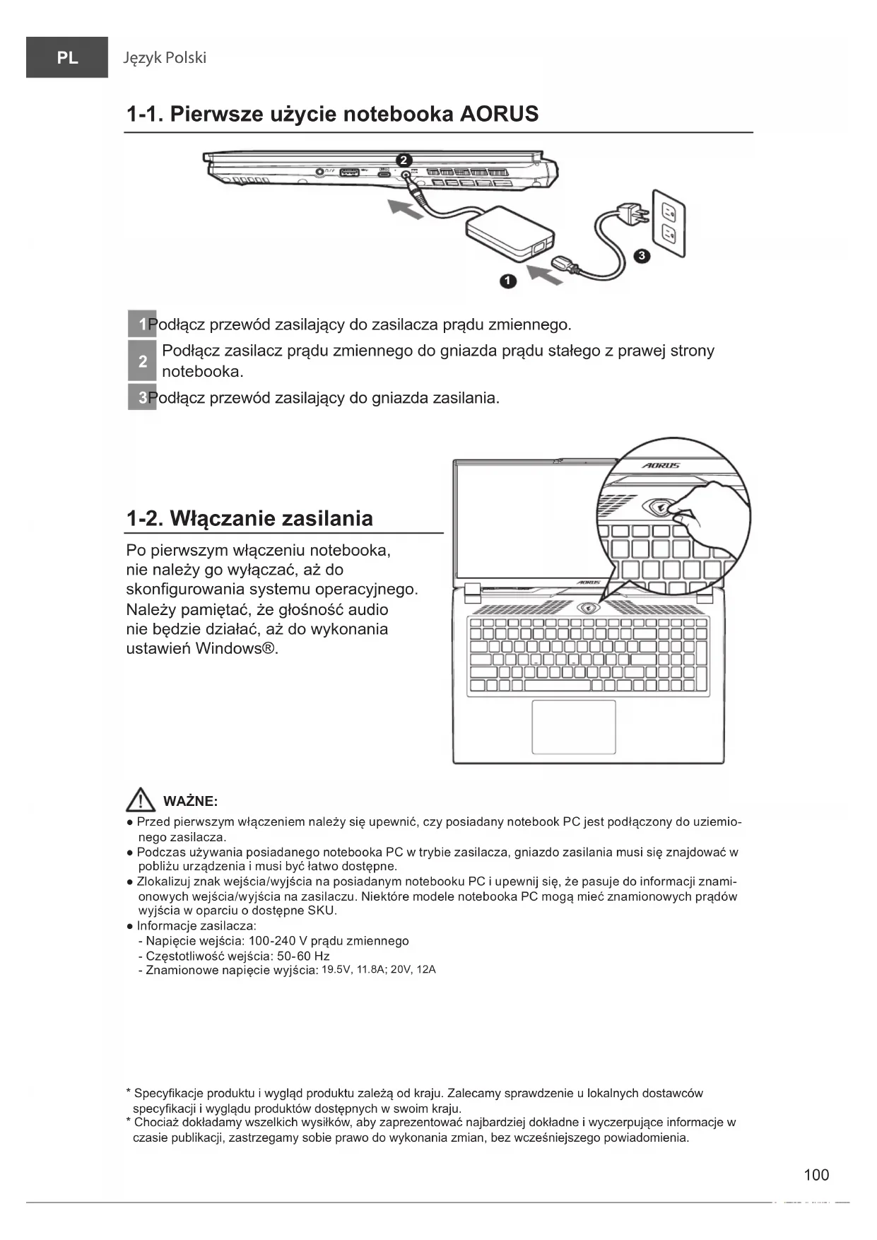 1-1. Pierwsze użycie notebooka AORUS DCIN
