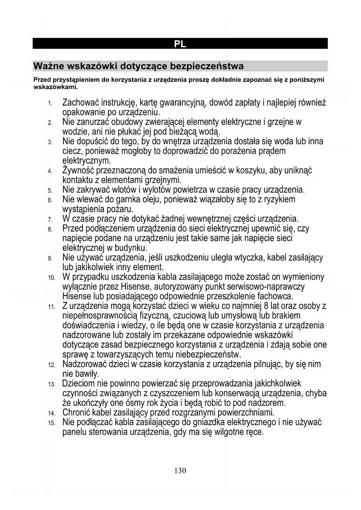 komercyjnych lub półkomercyjnych lub też w jakikolwiek sposób niezgodny z niniejszą instrukcją powoduje unieważnienie gwarancji i brak ze strony Hisense odpowiedzialności za powstałe w wyniku takiego korzystania uszkodzenia.