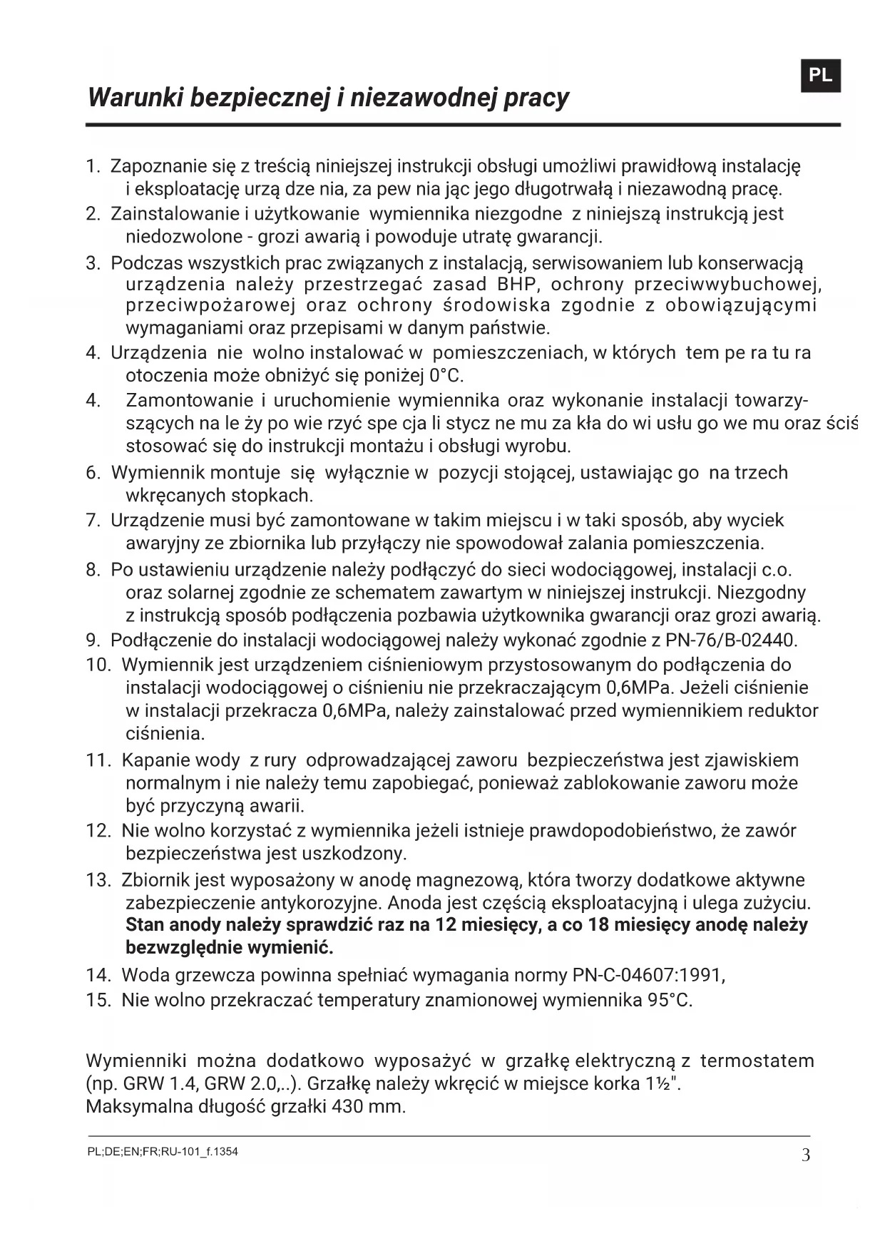 15. Nie wolno przekraczać temperatury znamionowej wymiennika 95°C.