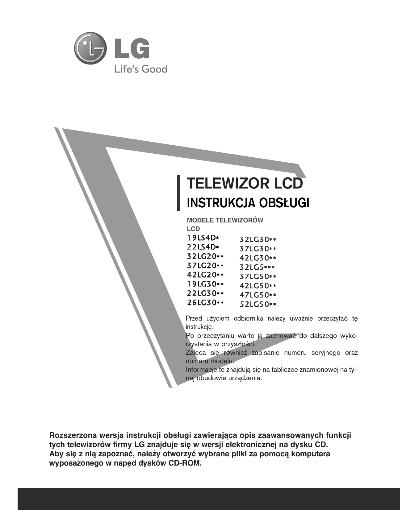 Pobierz instrukcję dla swojego Telewizor w formacie PDF za darmo! Znajdź swoją instrukcję 475020.BEU - LG i weź swoje urządzenie elektroniczne z powrotem w ręce. Na tej stronie opublikowane są wszystkie dokumenty niezbędne do korzystania z urządzenia. 475020.BEU marki LG.
