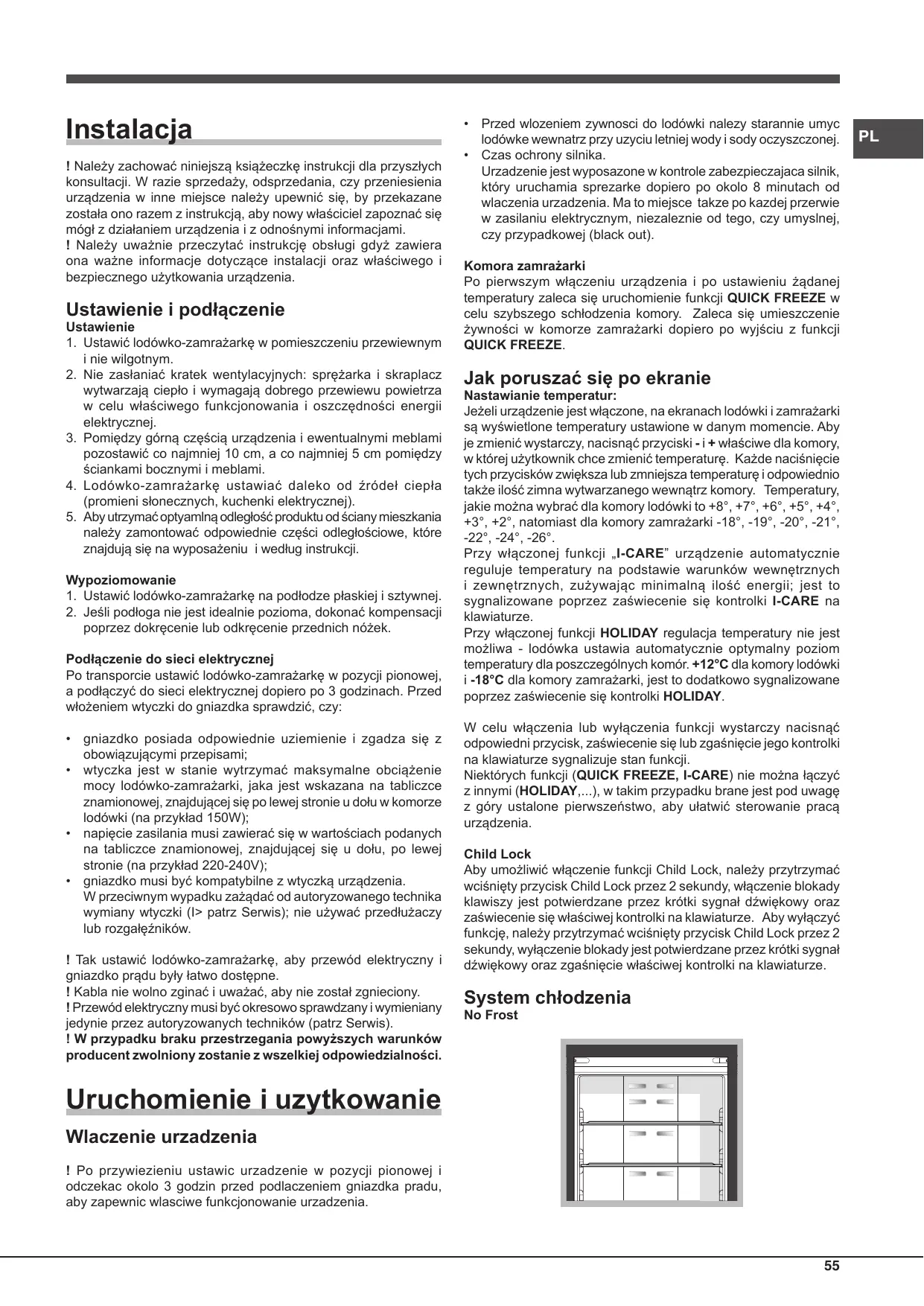 - Lodówko-zamrażarka jest wyposañona w zabezpieczenia silnika (patrz Uruchomienie i uzytkowanie).