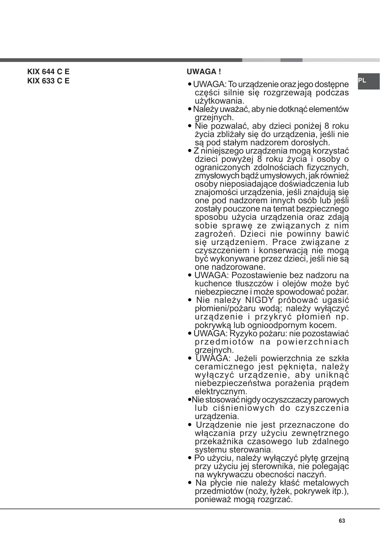 INSTRUKCJA OBSŁUGI KIX 633 C E HOTPOINT