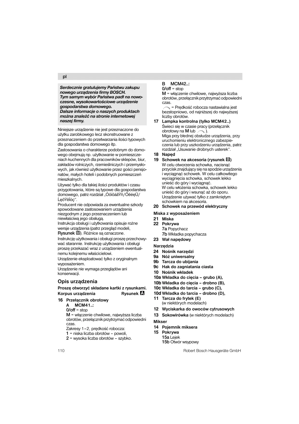 INSTRUKCJA OBSŁUGI MCM 4200/01 BOSCH