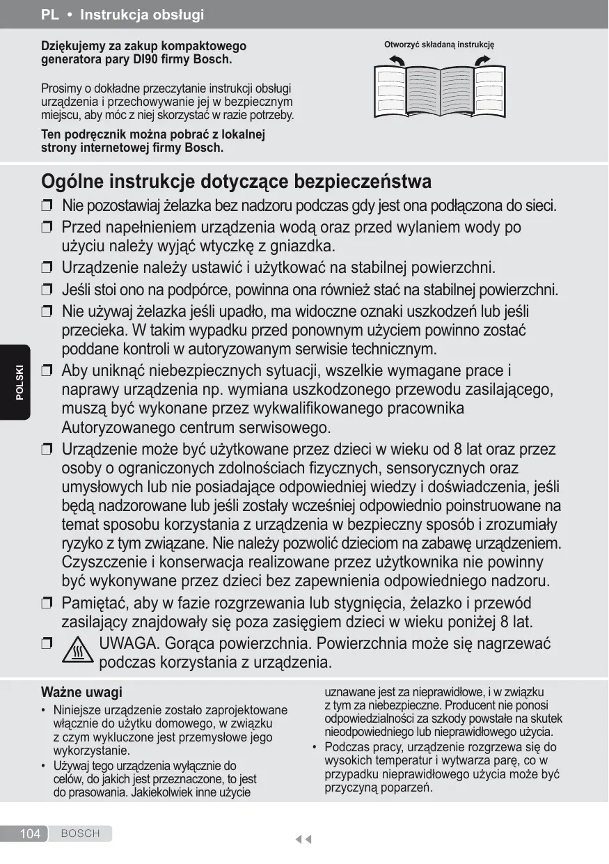 Prosimy o dokładne przeczytanie instrukcji obsługi urządzenia i przechowywanie jej w bezpiecznym miejscu, aby móc z niej skorzystać w razie potrzeby. Ten podręcznik można pobrać z lokalnej strony internetowej firmy Bosch.