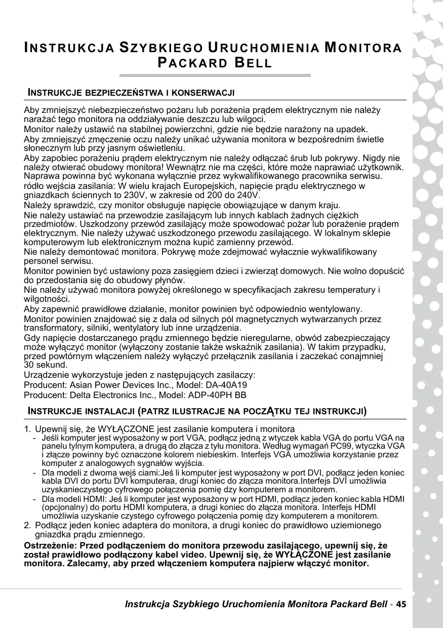 Inne instrukcje PACKARD BELL