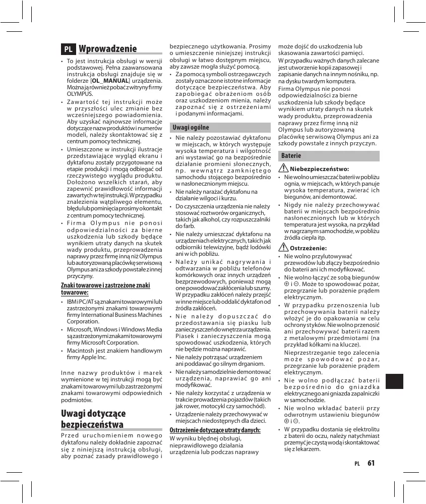 INSTRUKCJA OBSŁUGI VN-850PC OLYMPUS